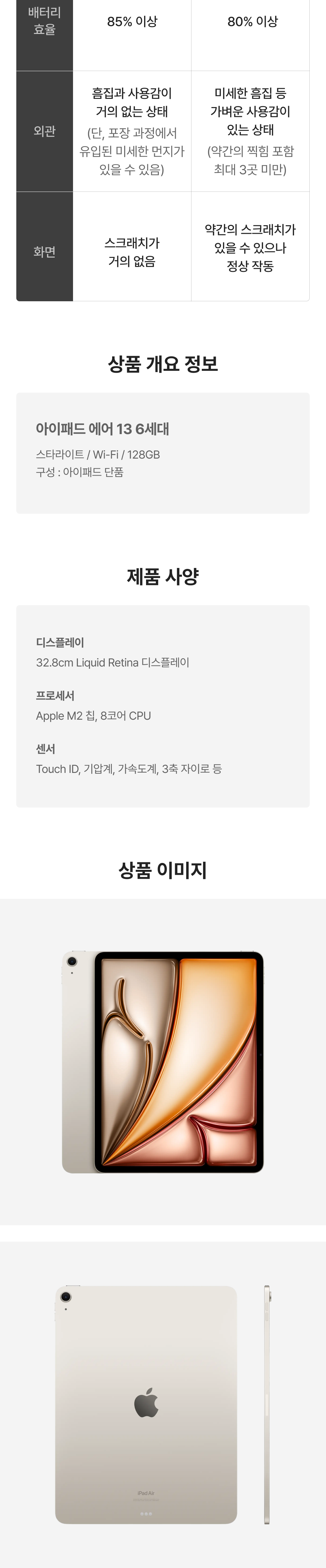 [S등급] 리퍼비시 아이패드 에어 13 6세대 wifi Apple M2 128기가 스타라이트