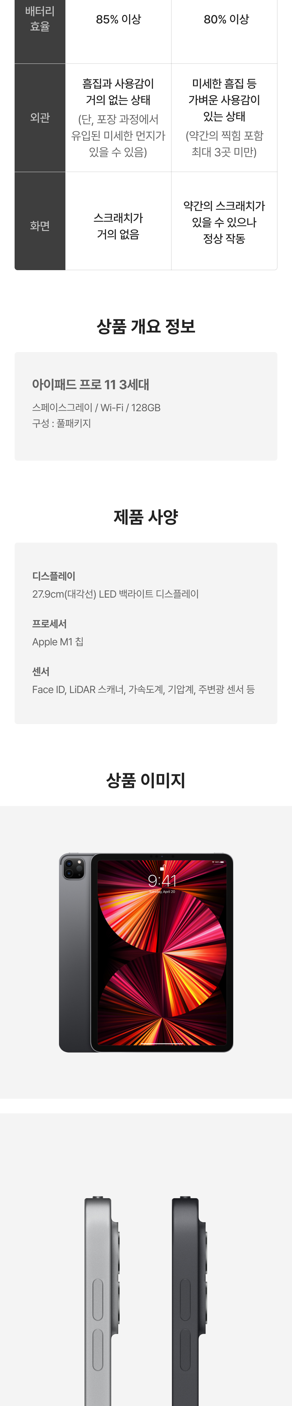[S등급] 리퍼비시 아이패드 프로 11 3세대 wifi Apple M1 128기가 스페이스그레이