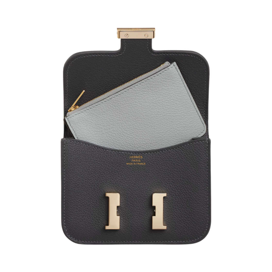 Hermes Constance Slim Bicolor Wallet Evercolor & Permabrass Ardoise Bleu Glacier