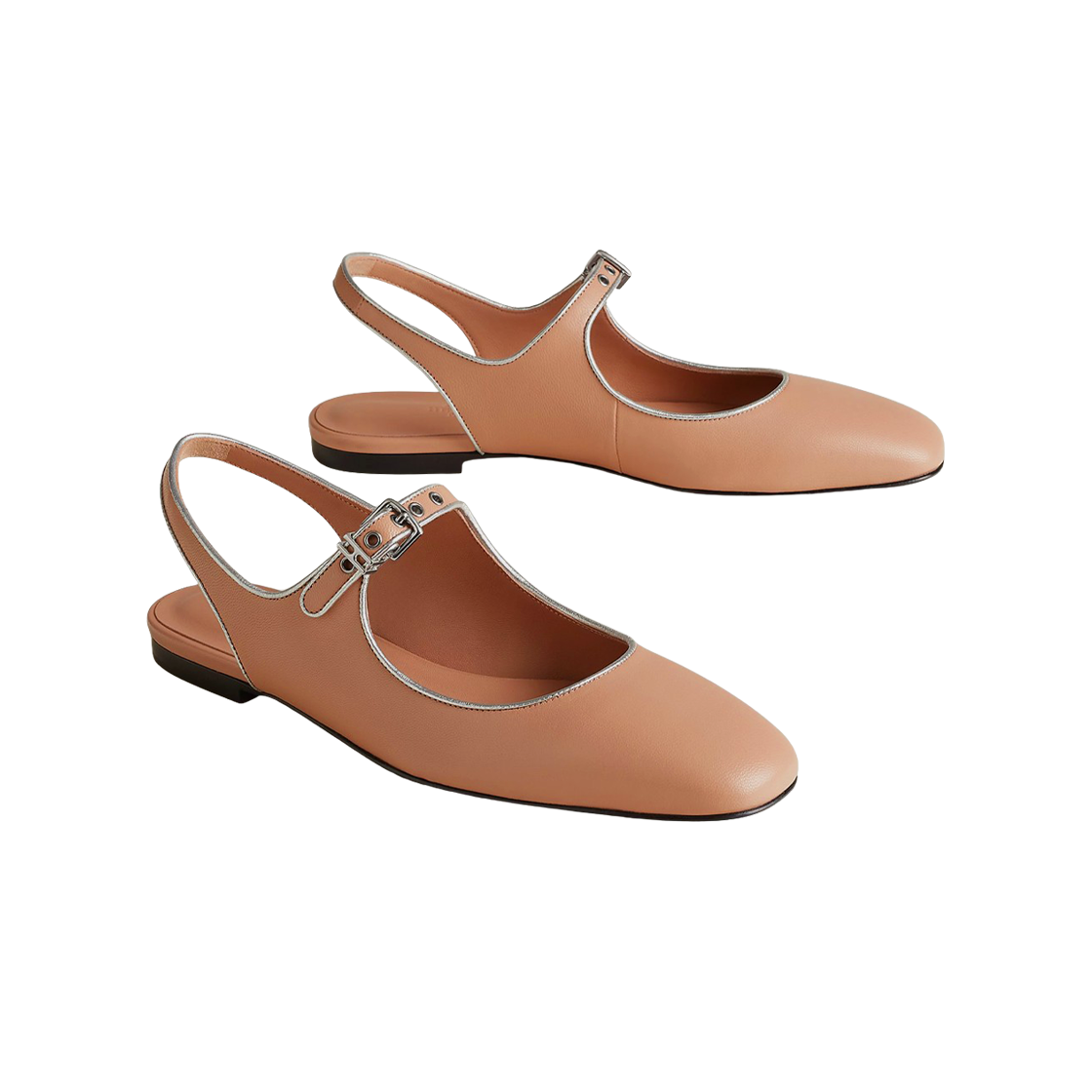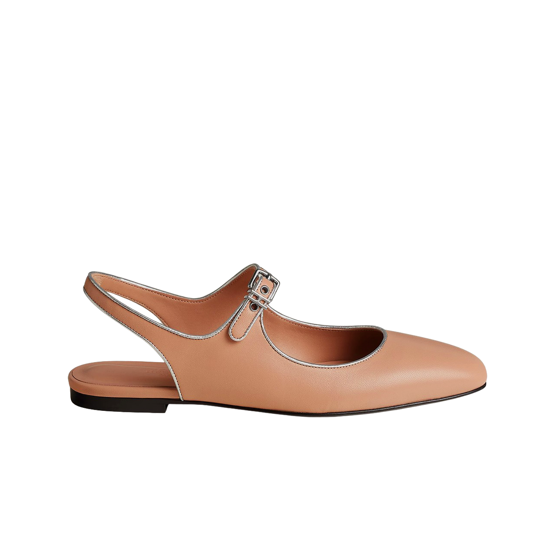 (W) Hermes Kleo Slingback Goatskin Nappa & Palladium Beige Perlino Gris Argente