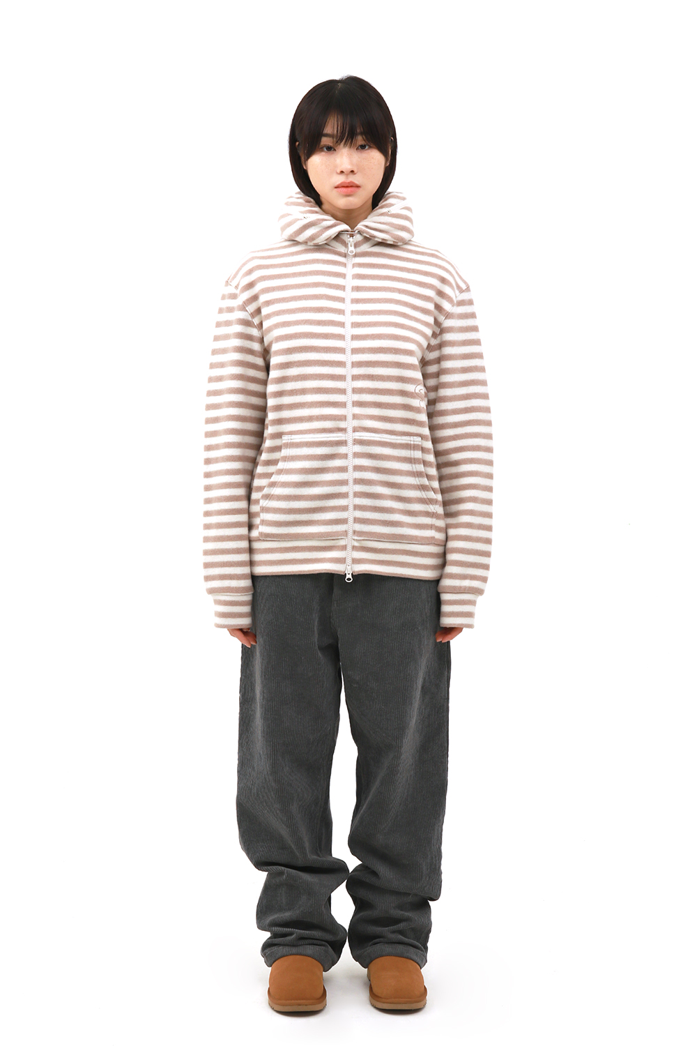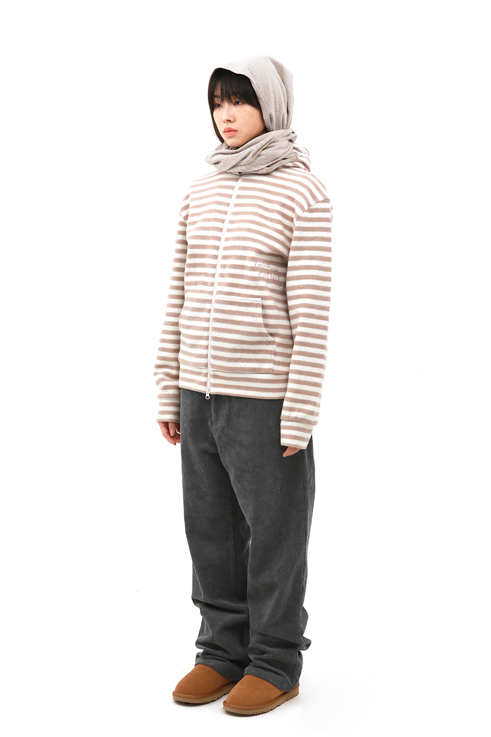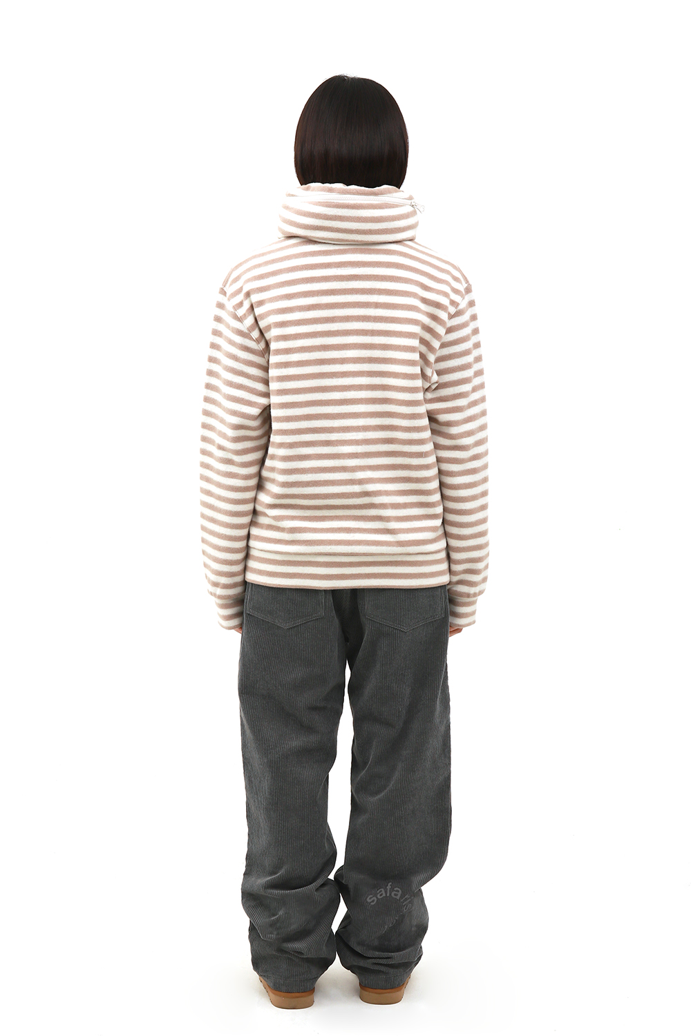 Safarispot S.T.C STRIPE FLEECE MUFFLER ZIP UP BEIGE