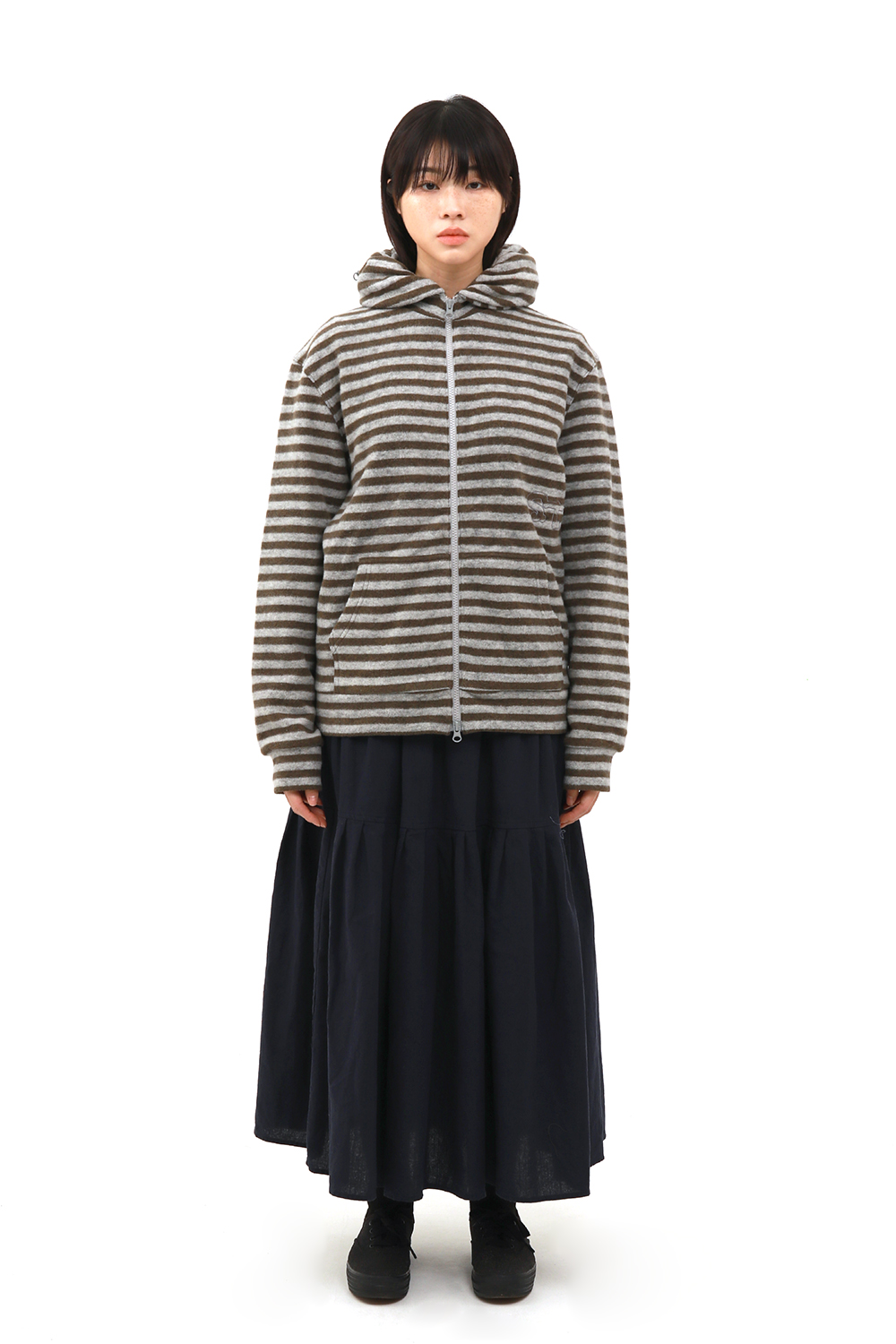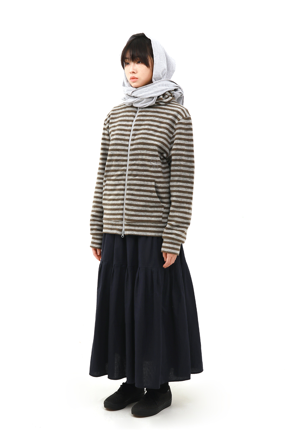 Safarispot S.T.C STRIPE FLEECE MUFFLER ZIP UP KHAKI