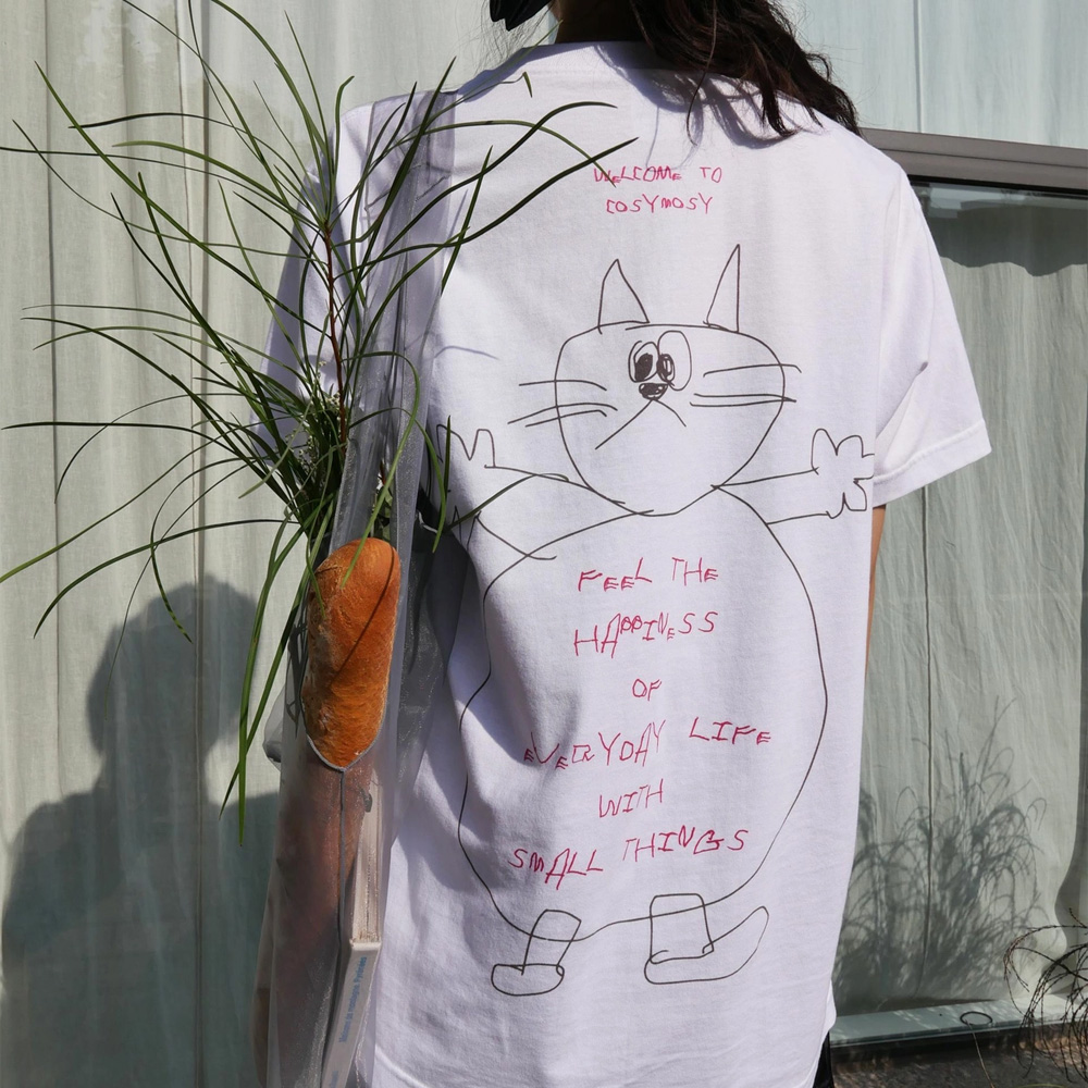 단품으로 착용해도 좋고, 다양한 의류와 레이어드 하기에도 좋은 Cosymosy Friends 티셔츠입니다. 코지모지 팀원이 직접 그린 귀여운 고양이, 강아지와 코지모지의 사훈을 낙서한 듯한 드로잉을 담아냈습니다. 사계절 내내 언제든 입어도 적당한 두께감의 클래식 숏 슬리브입니다. 탄탄하고 밀도 있는 원단으로 착용시 안정감과 편안함을 느낄 수 있습니다. 코지모지는 고양이, 강아지가 들어간 다양한 제작 상품들의 수익금 일부를 코지모지 동물 친구들을 위해 유기묘, 유기견 센터에 기부하고 있습니다. 기부 현황은 인스타그램에서 확인하실 수 있습니다. (@shop_cosymosy) Model size : 163cm