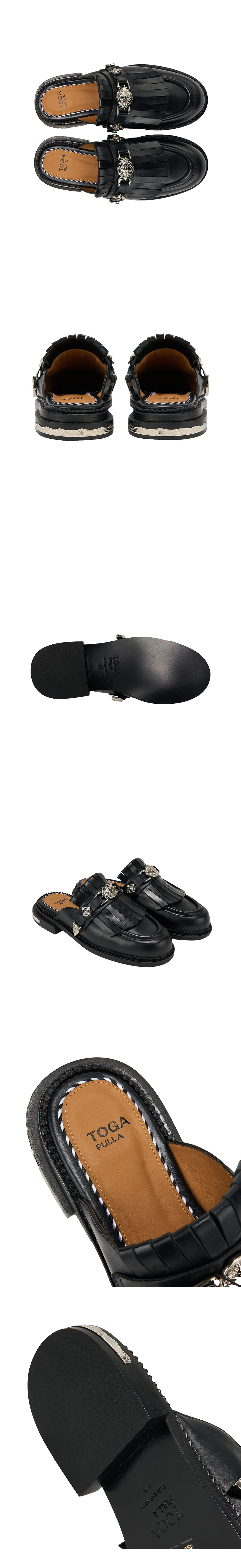 태슬 장식으로 지루하지 않게 멋을 주는 토가의 풀라 AJ1195 하드 레더입니다. - 어퍼에 테슬 장식, 메탈 스터드 - 메탈 플레이트 부착 힐