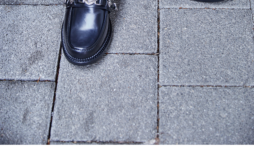 버클 금속 장식으로 존재감을 드러내는 토가의 비릴리스 AJ826 폴리도입니다. - 윤기가 있는 가죽 - 메탈 스터즈의 호스 비트조 벨트 부착 - 메탈 플레이트 부착 힐 - 힐 3cm