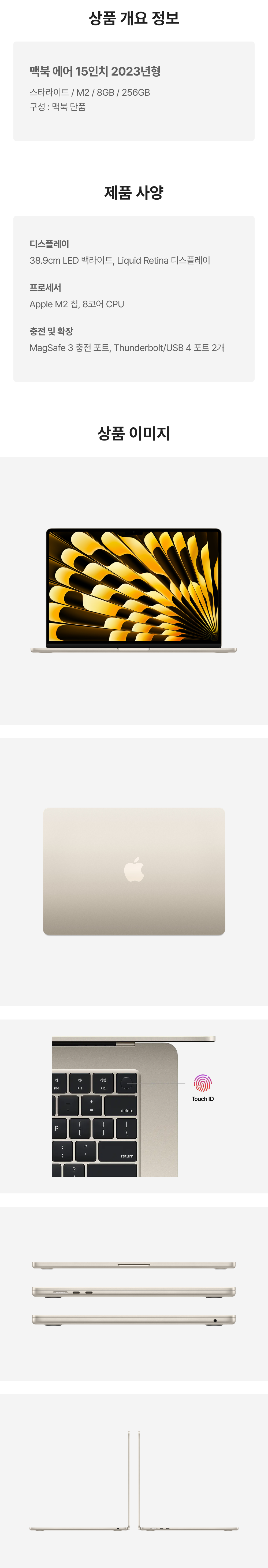 [S등급] 리퍼비시 2023 맥북 에어 15 M2 8c 256기가 SSD 8기가 램 스타라이트