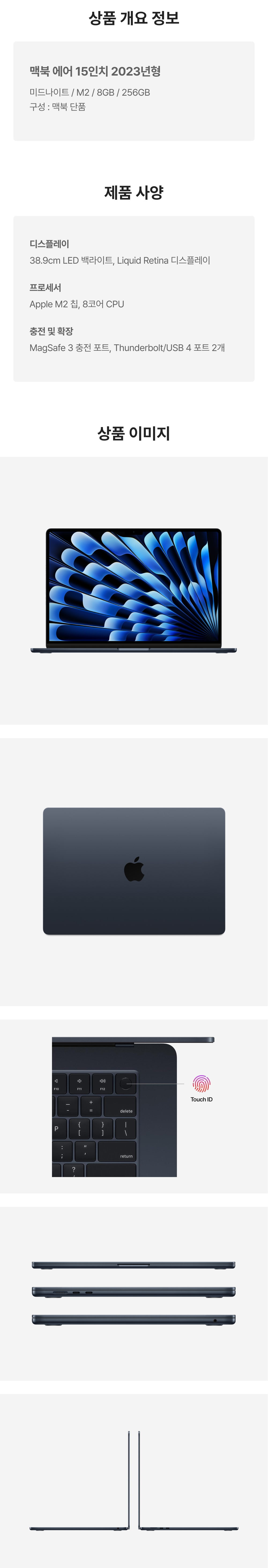 [S등급] 리퍼비시 2023 맥북 에어 15 M2 8c 256기가 SSD 8기가 램 미드나이트