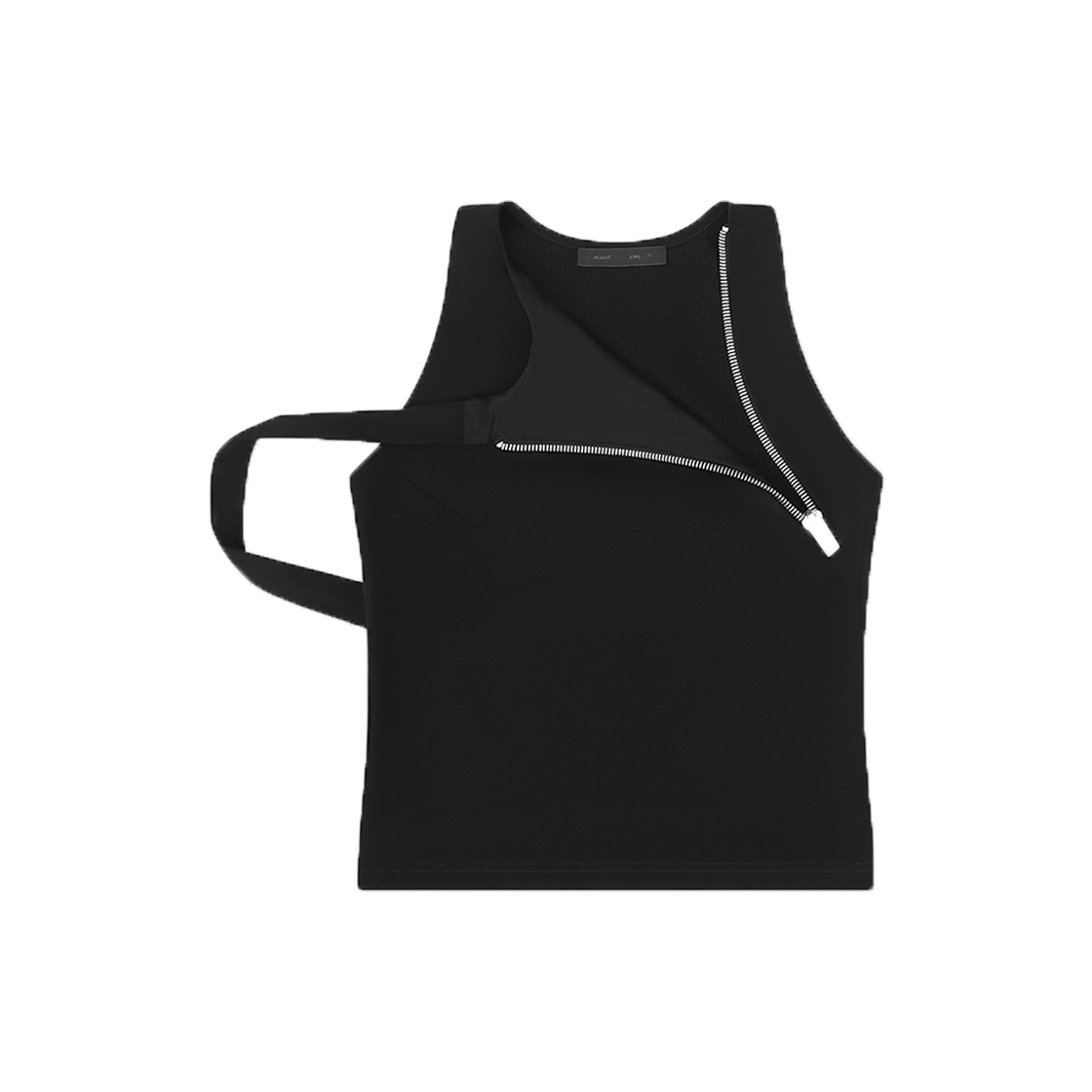 프론트 지퍼와 백 스트랩으로 다양하게 연출할 수 있는 엘리엇 에밀의 해마타이트 탱크 탑입니다. - 프론트 사선 지퍼 - 백 스트랩 - 블랙 탱크 탑