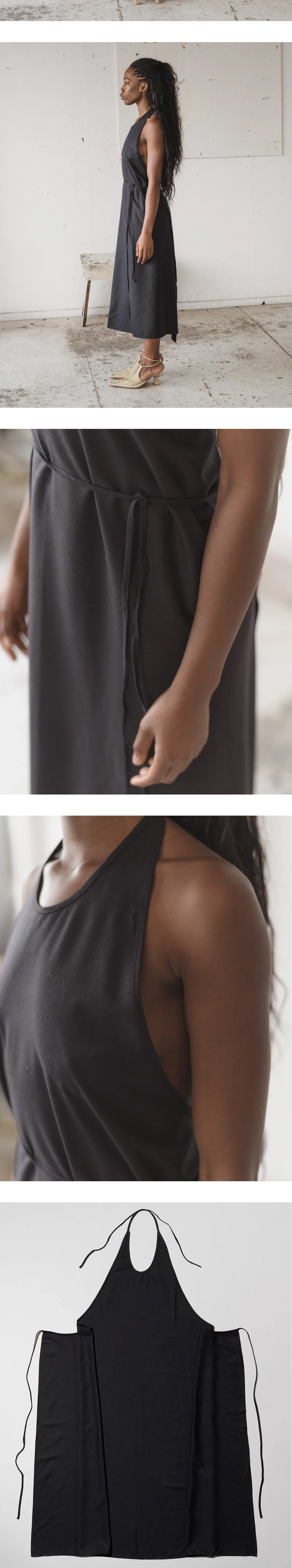 다양하게 착용 가능해 베스트 인기 아이템인 베이스레인지의 에이프런 드레스입니다. - 홀터넥과 오픈백 포인트 - 허리와 목의 스트랩으로 다양한 실루엣 착용 가능 - 보풀이 일어난 듯한 와일드 실크 소재 * 모델 S 사이즈 착용