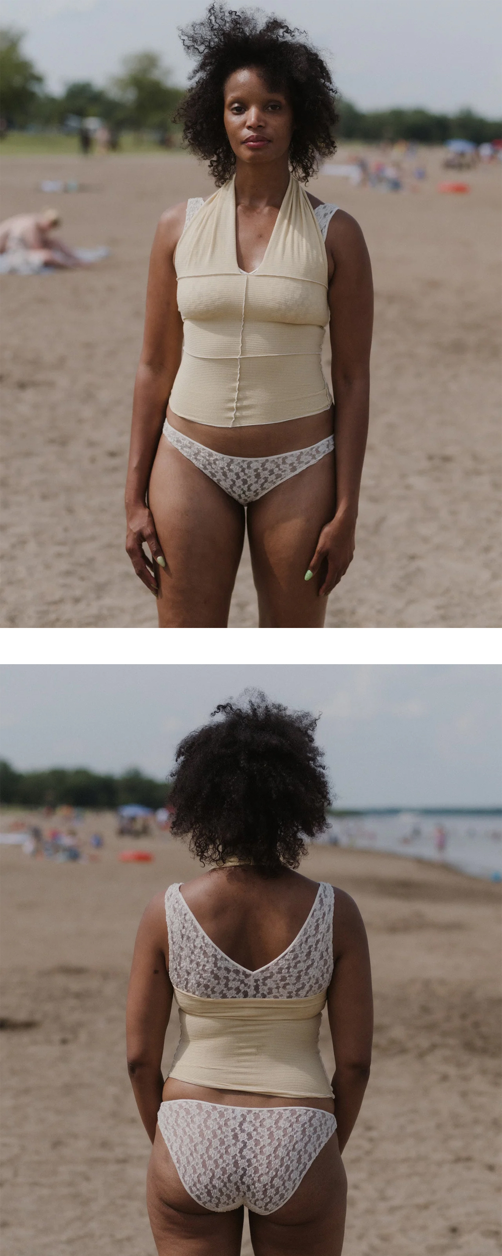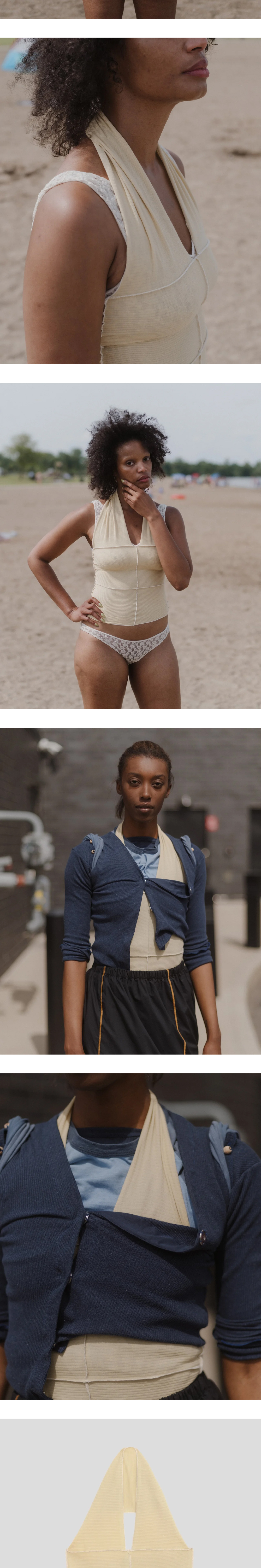 연한 레몬 컬러와 화이트 스티치로 봄을 담은 베이스레인지의 신더 홀터 탑입니다. - 부드럽고 편안한 촉감 - 자연스러운 마감 처리 - 레이어드, 단독 착용 등 다양하게 활용 가능 * 사이즈 가이드: 44~55.5 XS 착용 권장, 모델 S 사이즈 착용