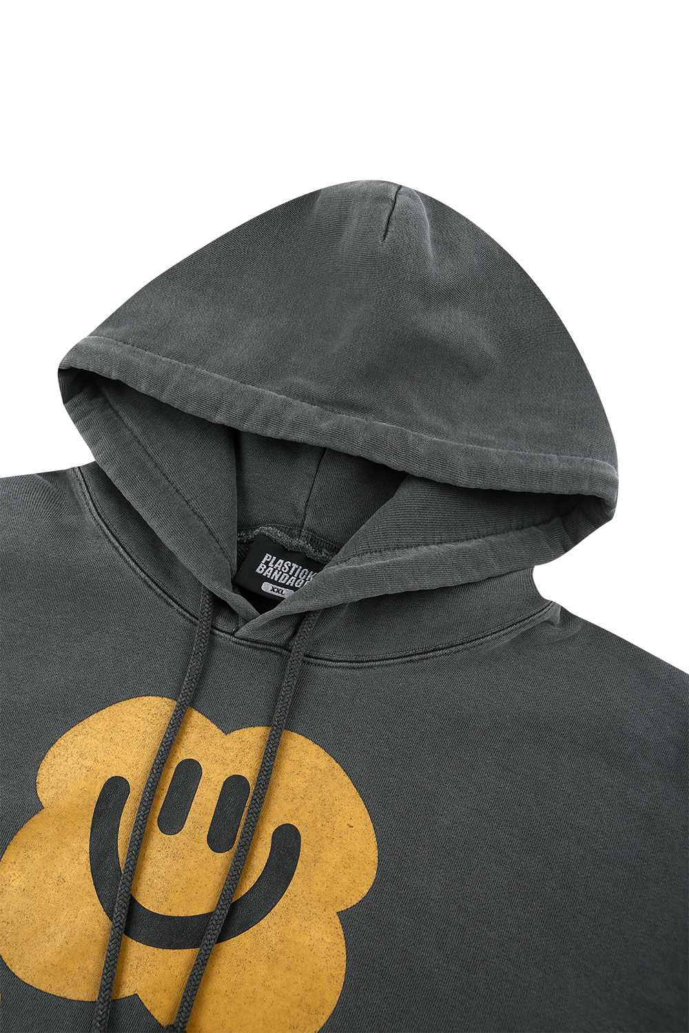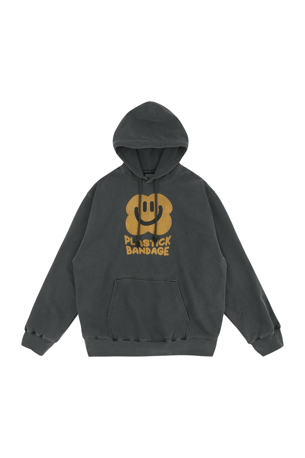 Plastick Bandage Smiley Plower Hoodie Pigment Black