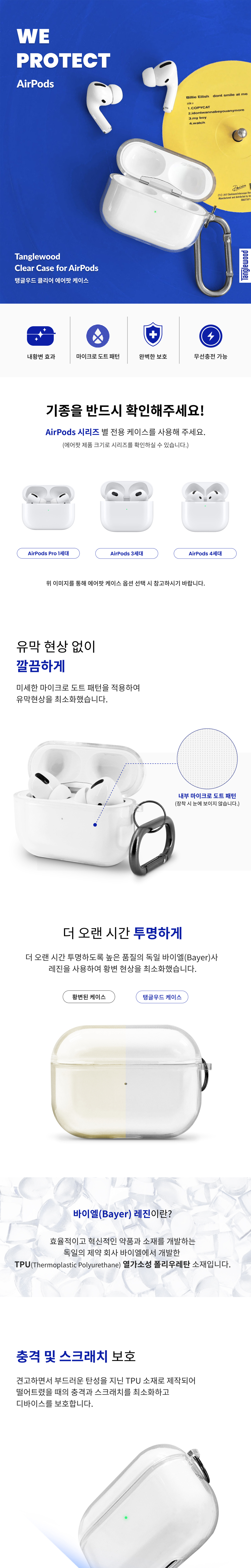 탱글우드 클리어 투명 에어팟 4세대 케이스