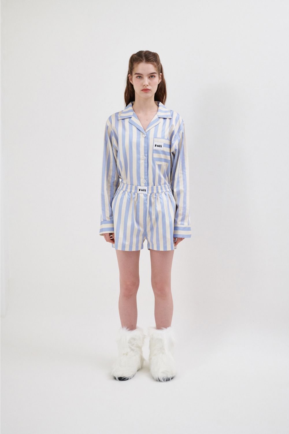 폴리 파자마 쇼츠 페일 블루