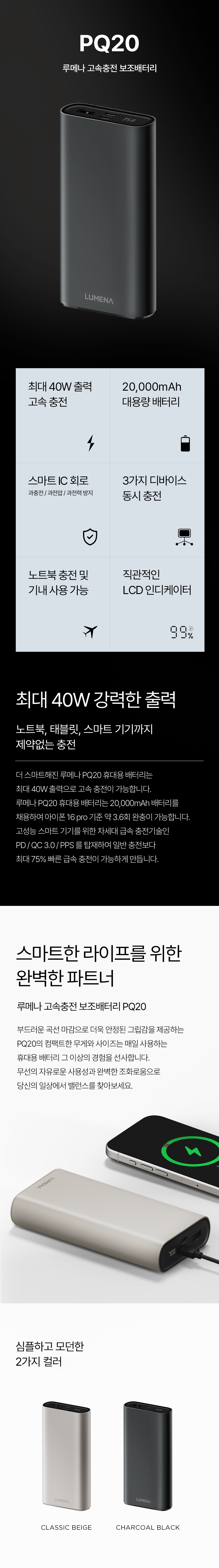 루메나 PQ20 고속 충전 보조배터리 클래식 베이지