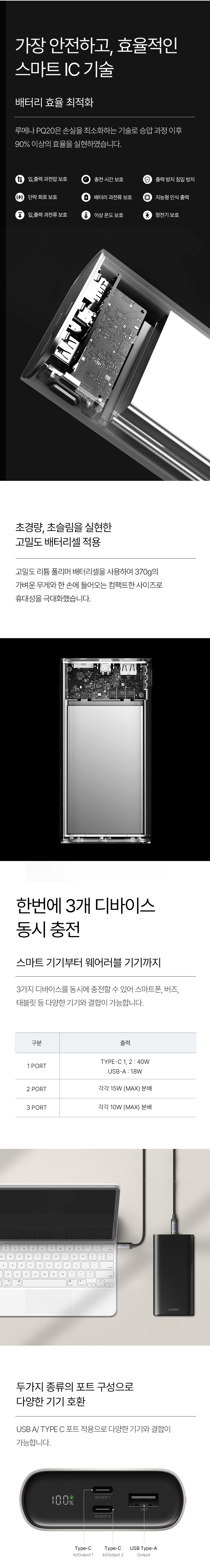 루메나 PQ20 고속 충전 보조배터리 차콜 블랙