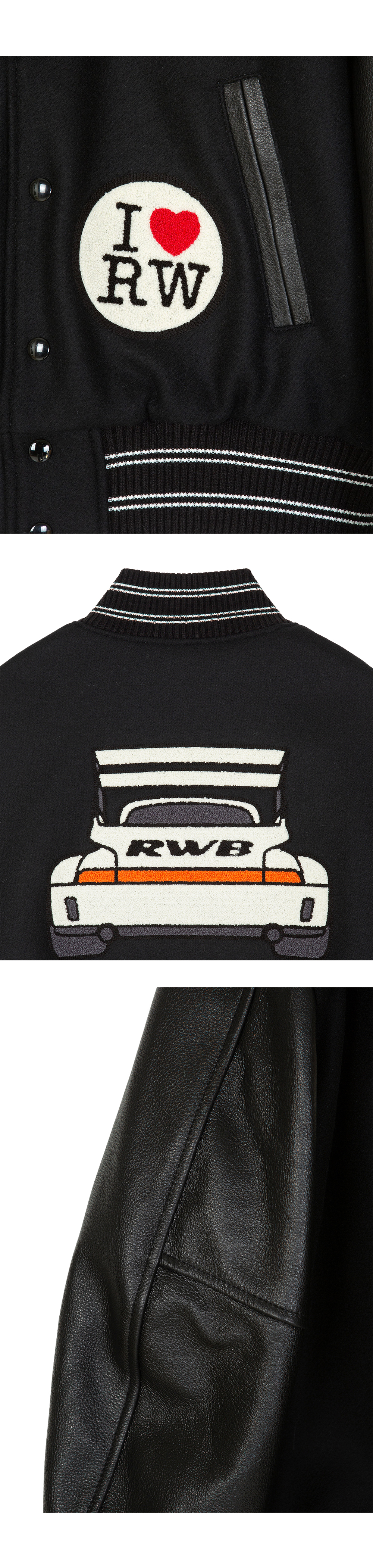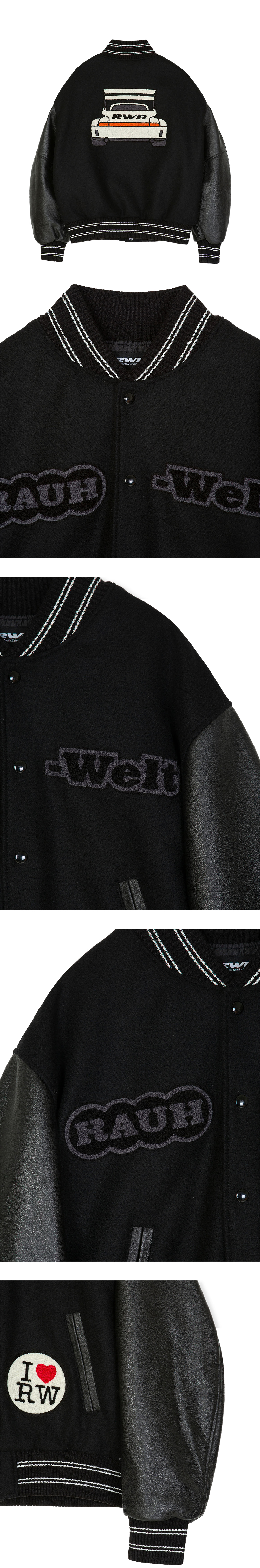 알떠블유비 엠브로이더리 울 바시티 자켓 블랙