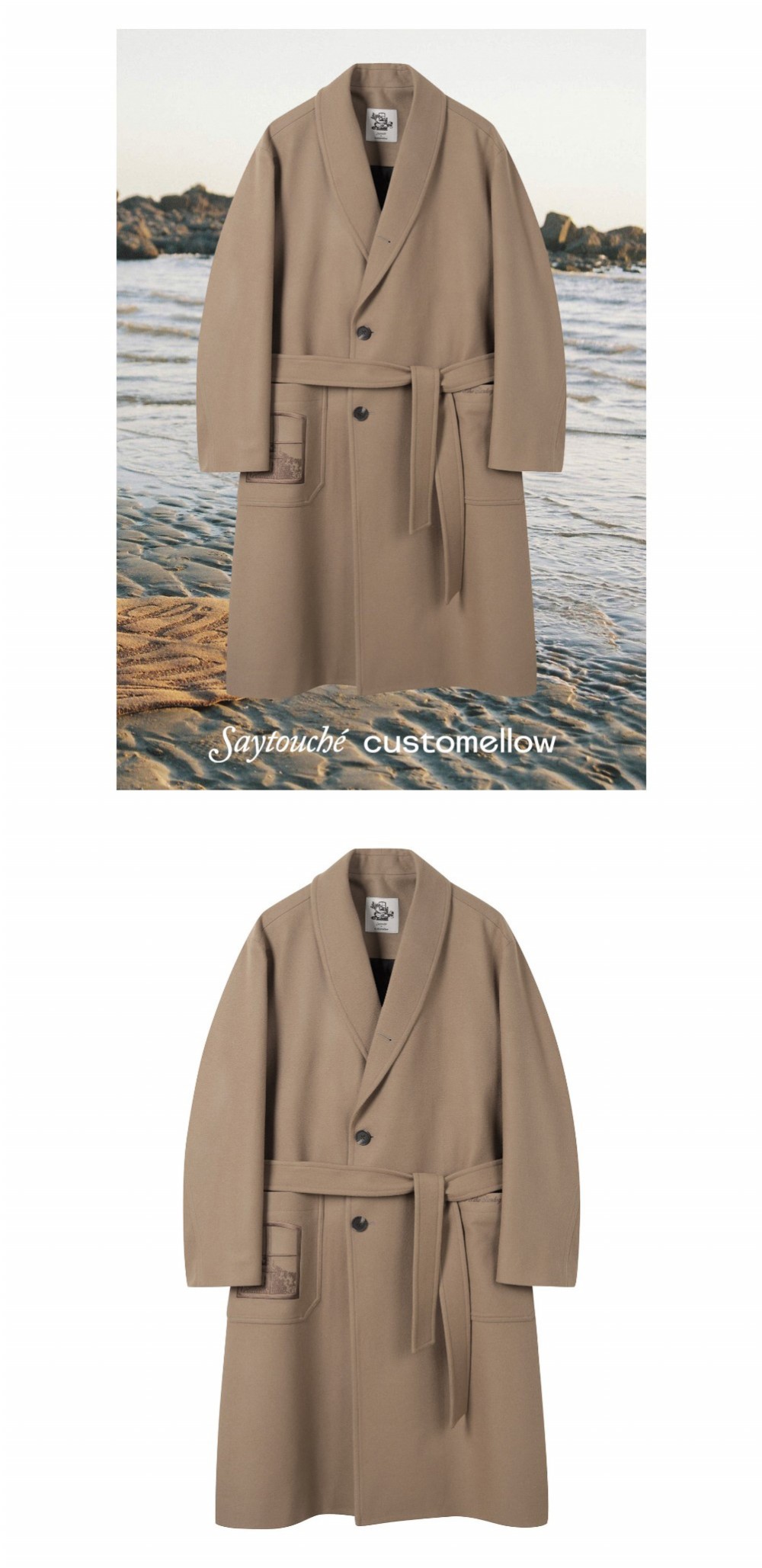 커스텀멜로우 세이투셰 자수 로브 코트 카멜
