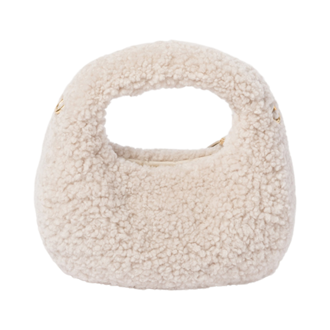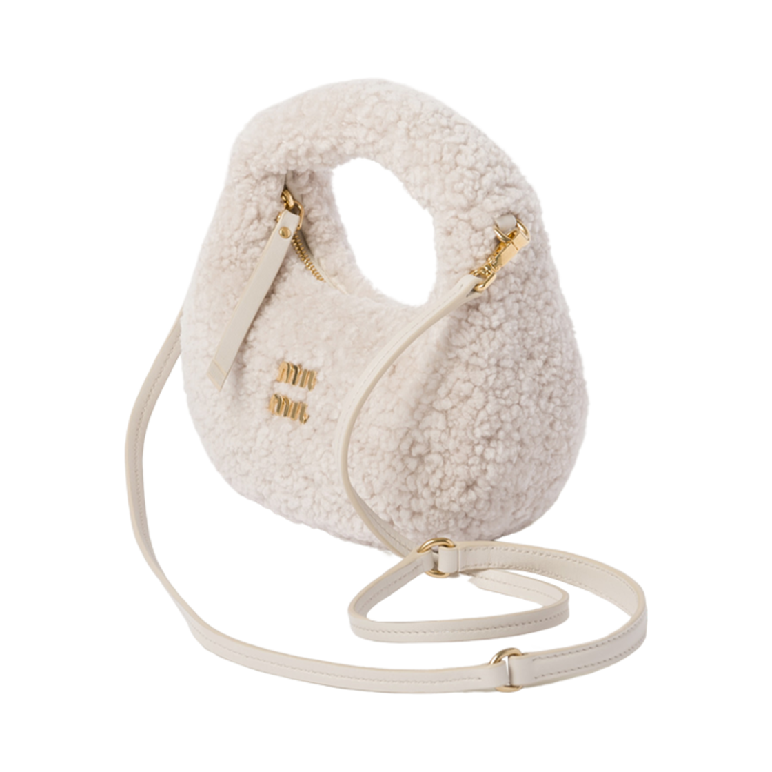Miu Miu Wander Shearling Hobo Bag with Leather Details Ivory