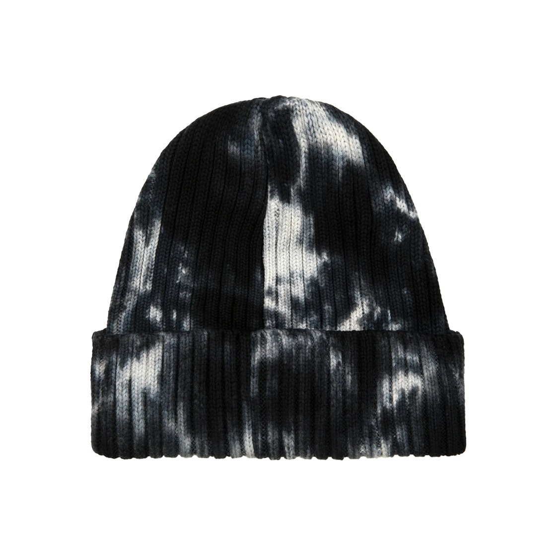 블랙 타이 다이 디자인이 매력적인 에이프 나우 비니입니다. - 타이 다이 디자인 - 롤드 브림 - 리브 디자인