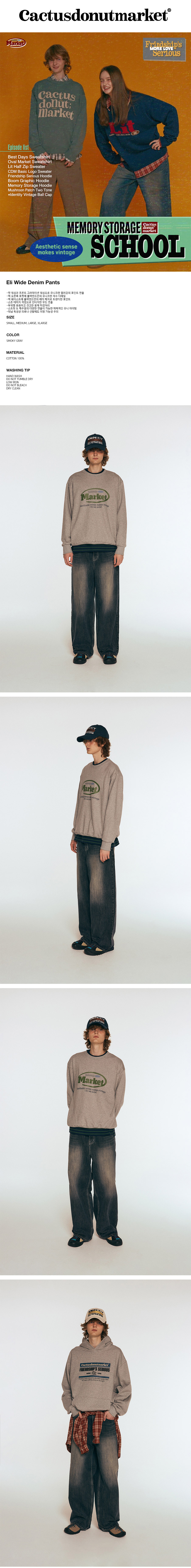 캑터스도넛마켓 엘리 와이드 데님 팬츠 스모키 그레이