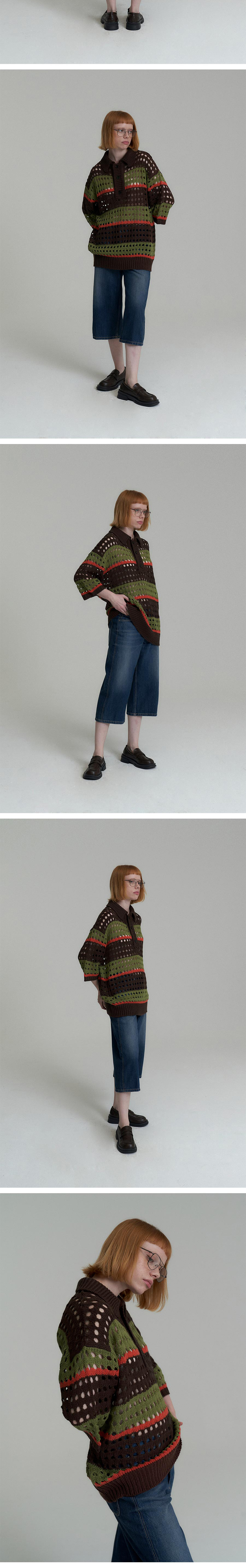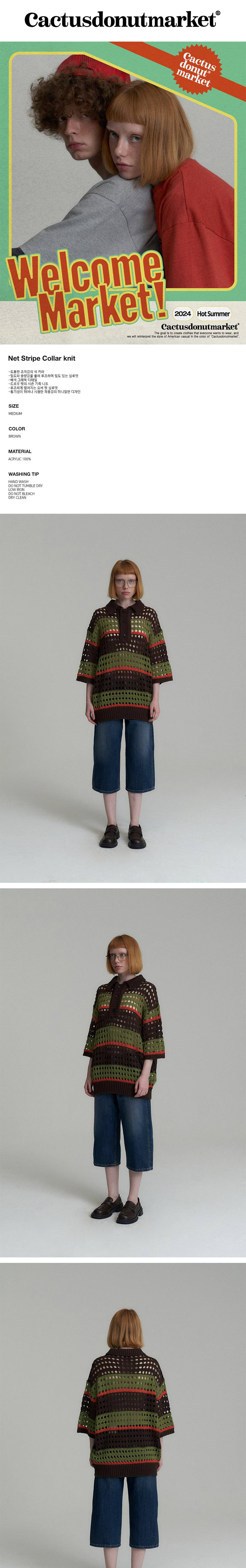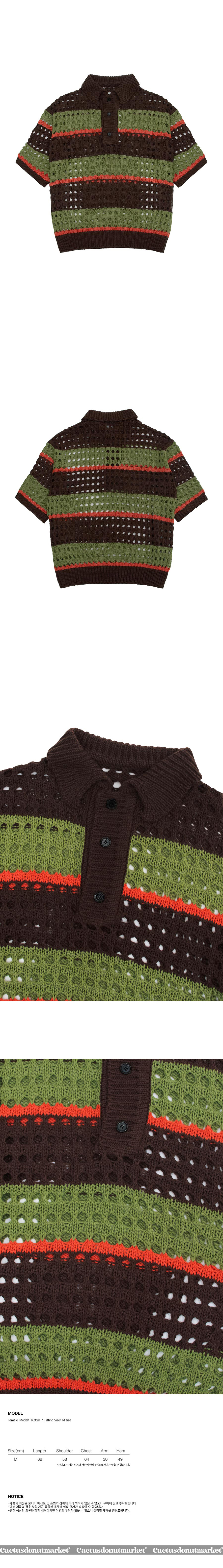 캑터스도넛마켓 넷 스트라이프 칼라 니트 브라운