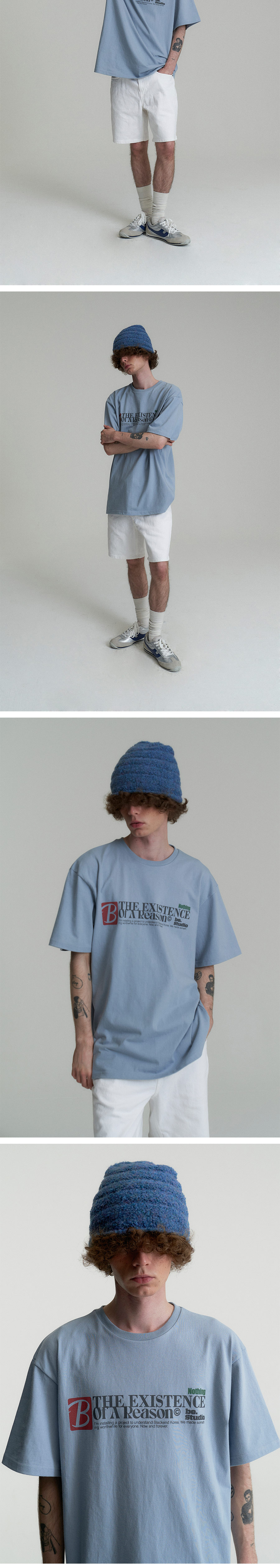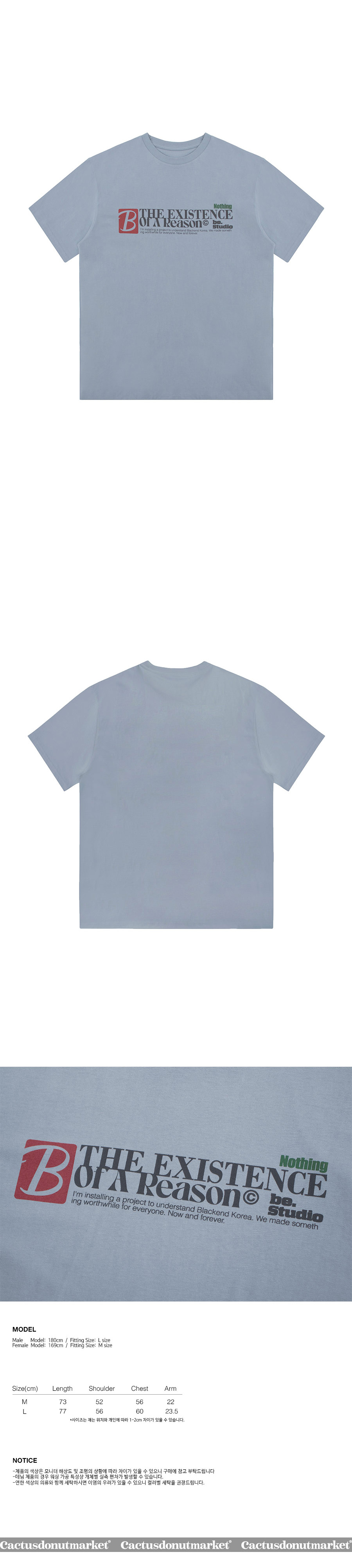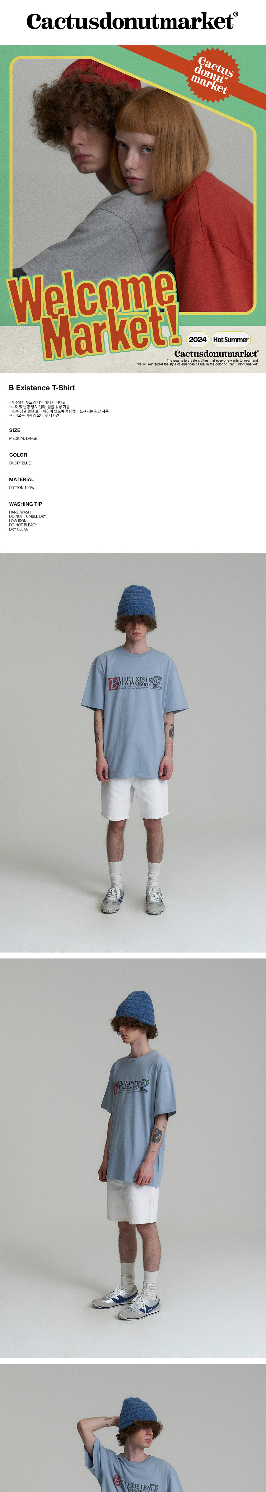 캑터스도넛마켓 비 이그지스턴스 티셔츠 더스티 블루