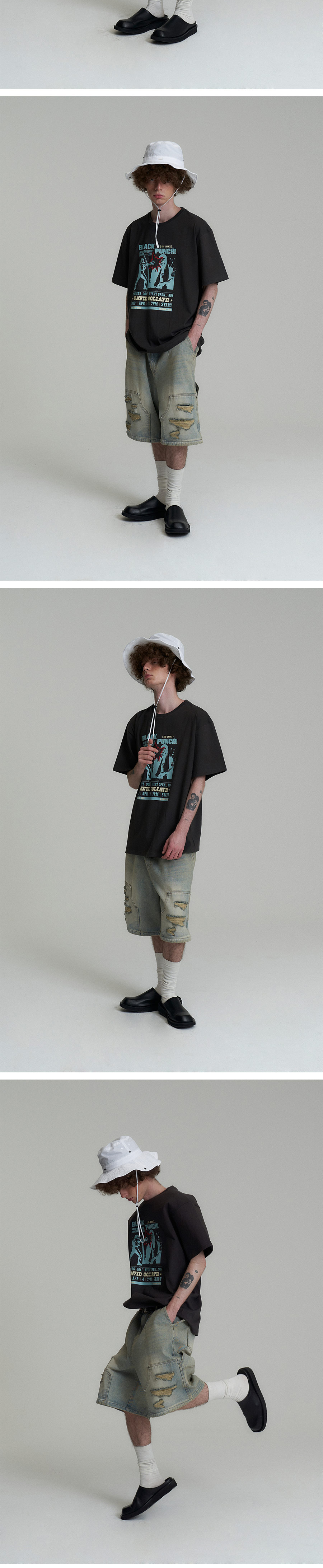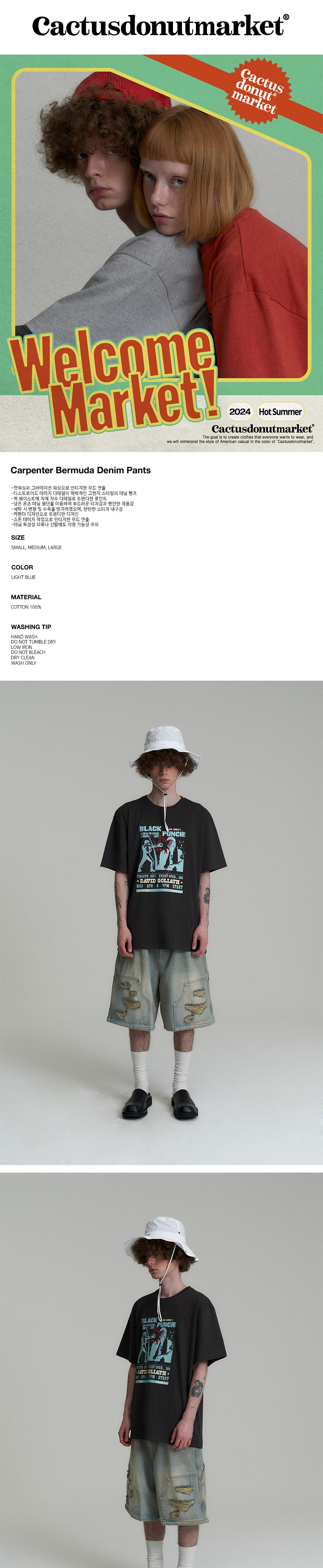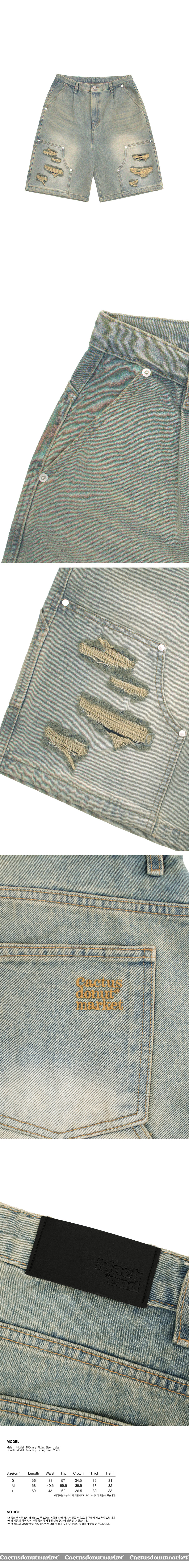 캑터스도넛마켓 카펜터 버뮤다 데님 팬츠 라이트 블루