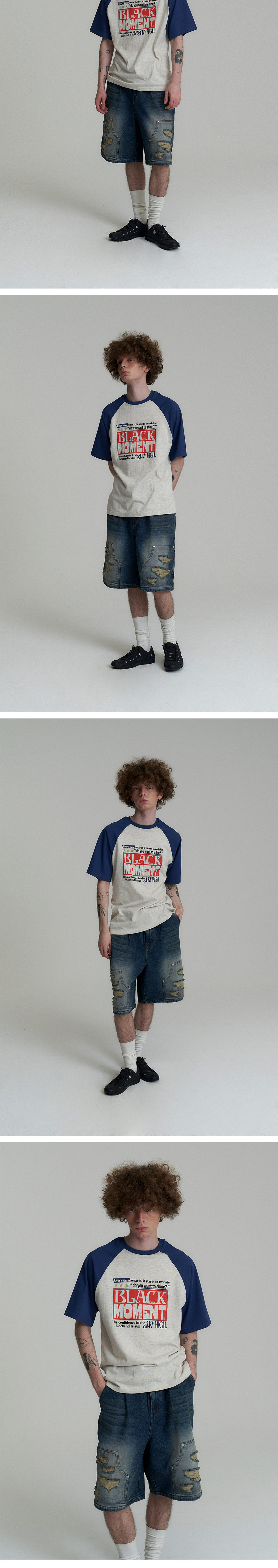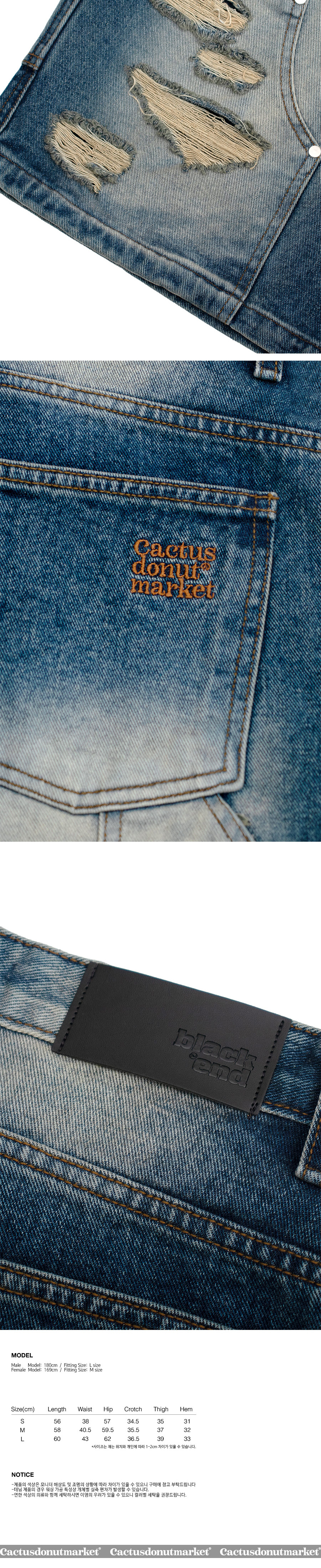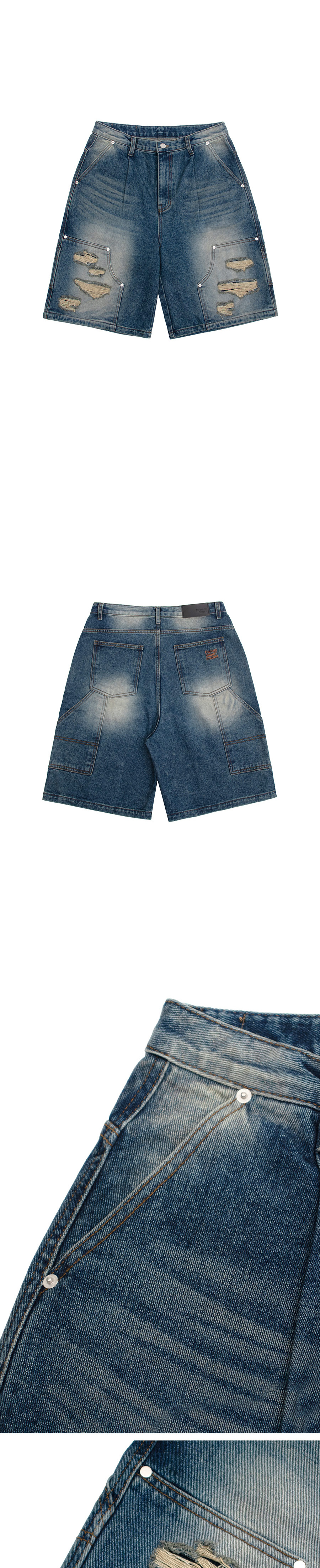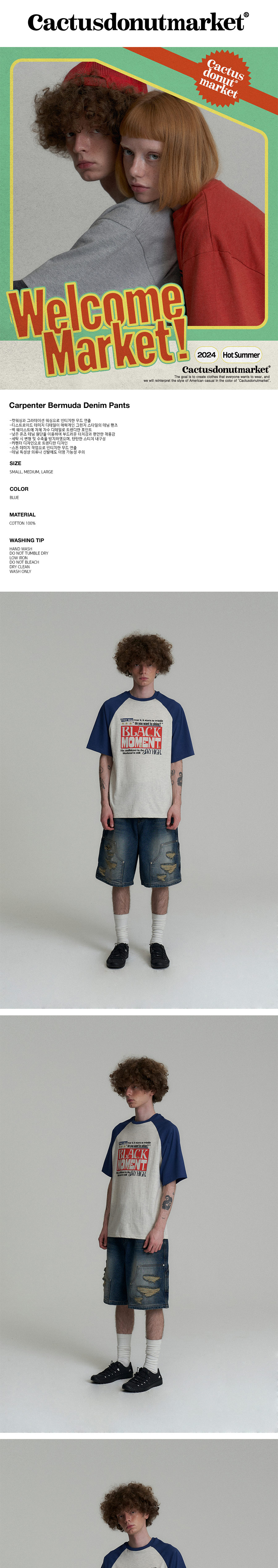 캑터스도넛마켓 카펜터 버뮤다 데님 팬츠 블루