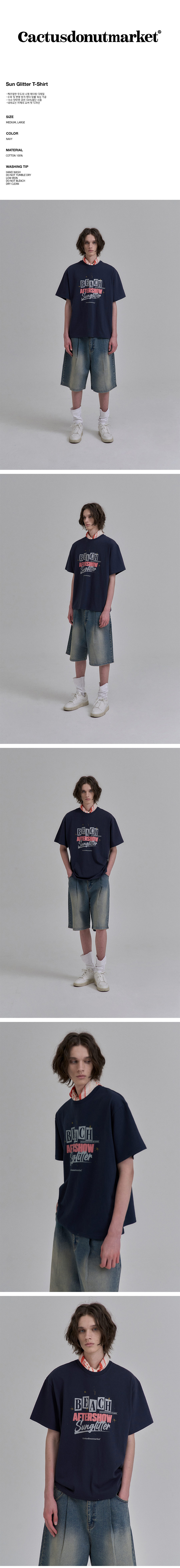 캑터스도넛마켓 썬 글리터 티셔츠 네이비