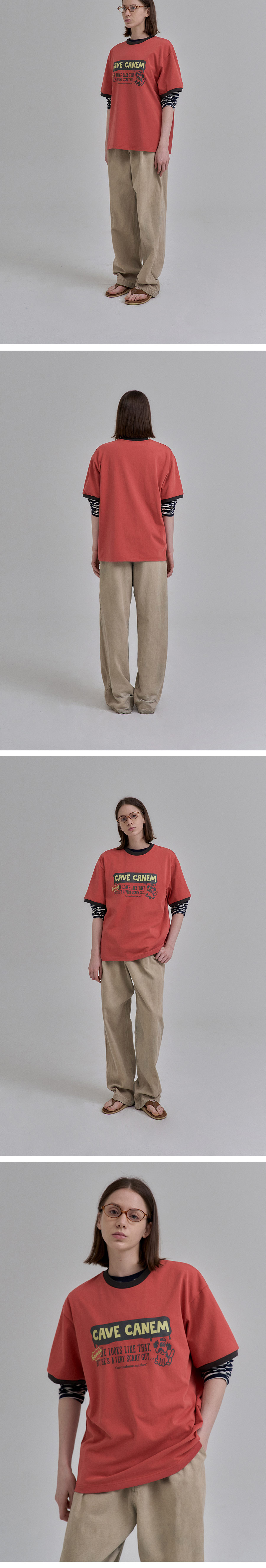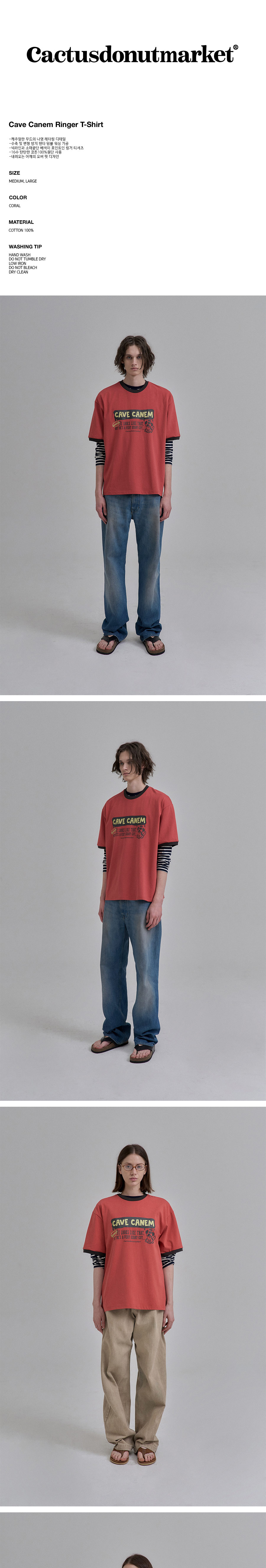 캑터스도넛마켓 케이브 카넴 링거 티셔츠 코랄
