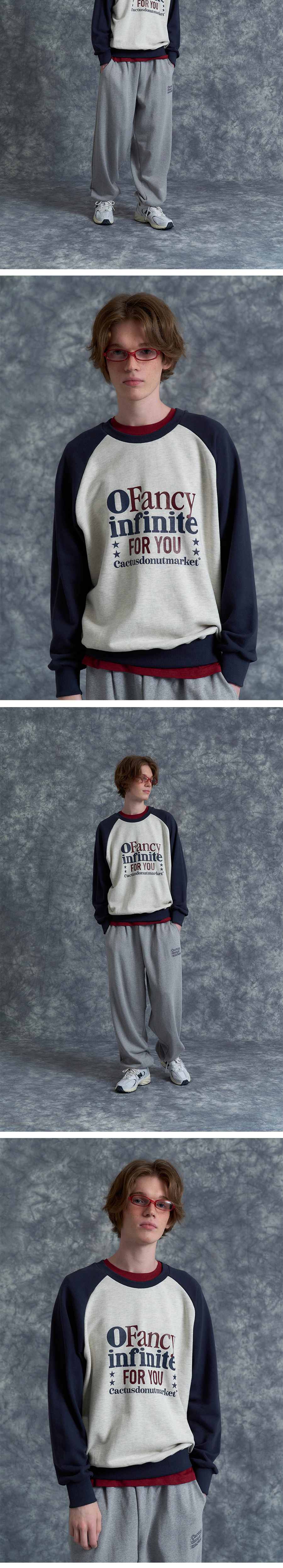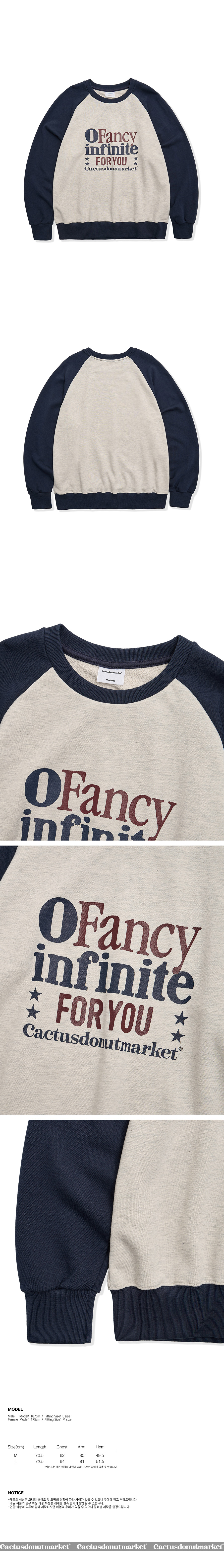 캑터스도넛마켓 팬시 인피니트 래글런 스웨트셔츠 네이비