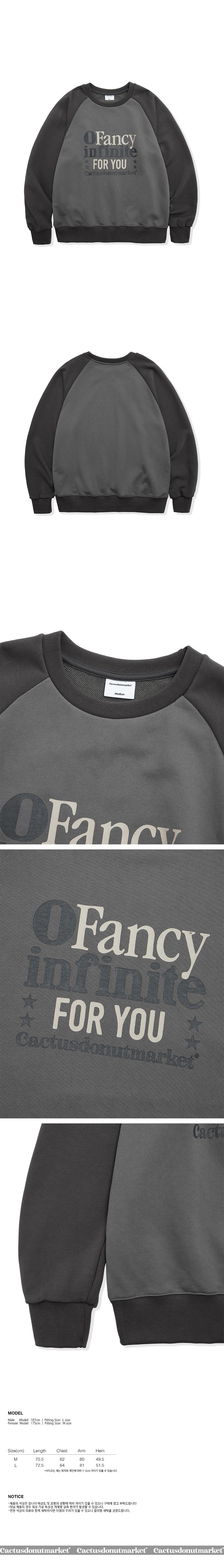 캑터스도넛마켓 팬시 인피니트 래글런 스웨트셔츠 차콜