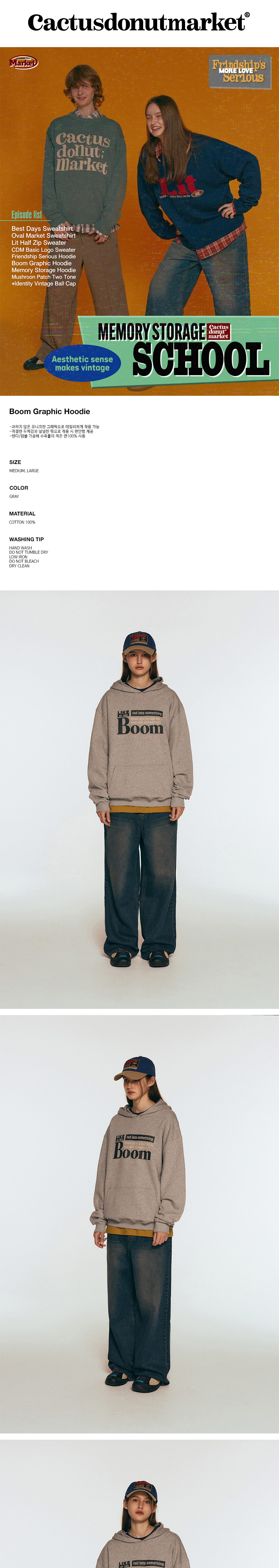 캑터스도넛마켓 붐 그래픽 후디 그레이