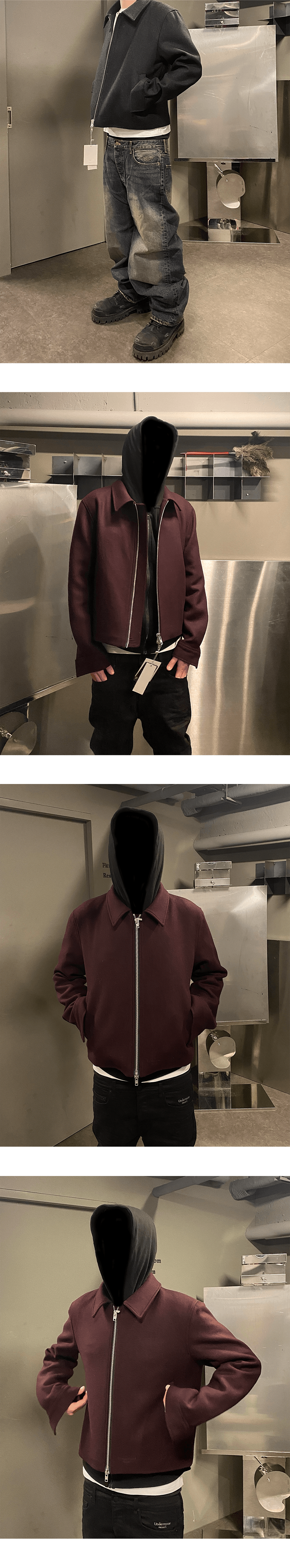 언더마이카 무.92 안티 Fxxking 로고 플레이 크롭 울 블루종 - 브라운