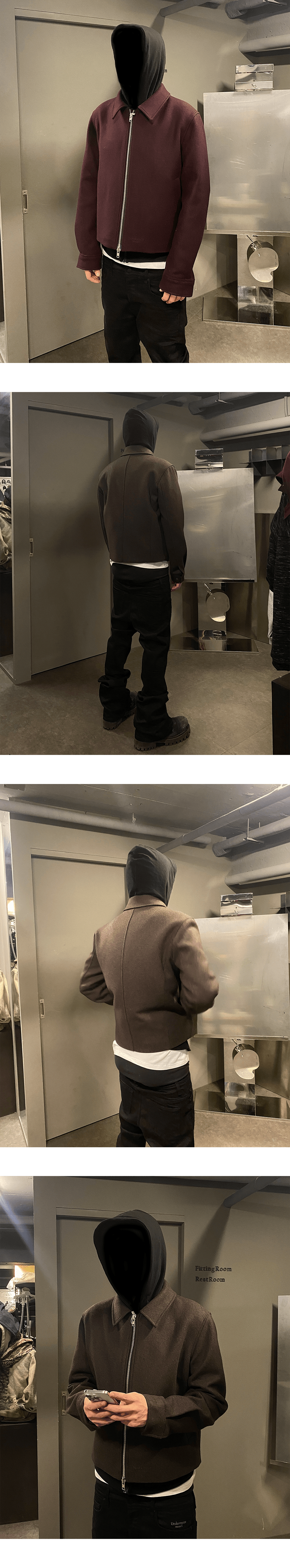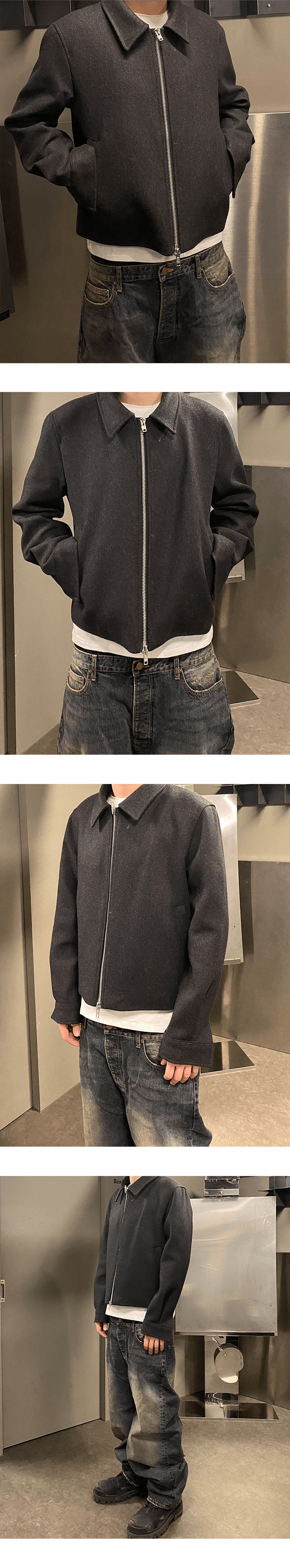 언더마이카 무.92 안티 Fxxking 로고 플레이 크롭 울 블루종 - 차콜