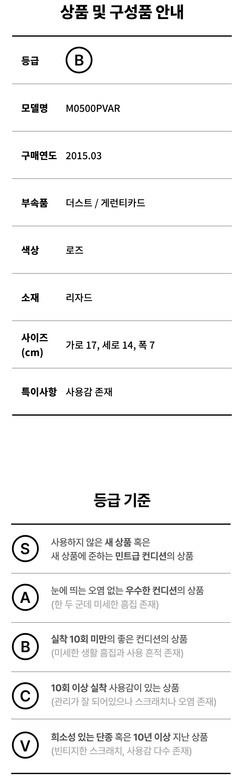 모든 상품(가죽, 의류, 잡화, 슈즈 등)은 사용자의 사용방법과 환경에 따라 변형, 변색이 될 수 있으니 반드시 취급 라벨에 표시된 관리 안내를 따르시길 권장 드립니다. 이는 정도의 차이가 있으며 과도한 체열과 땀, 습기, 빛, 마찰은 제품의 손상 및 변형을 일으킬 수 있으므로 주의하시길 바랍니다.