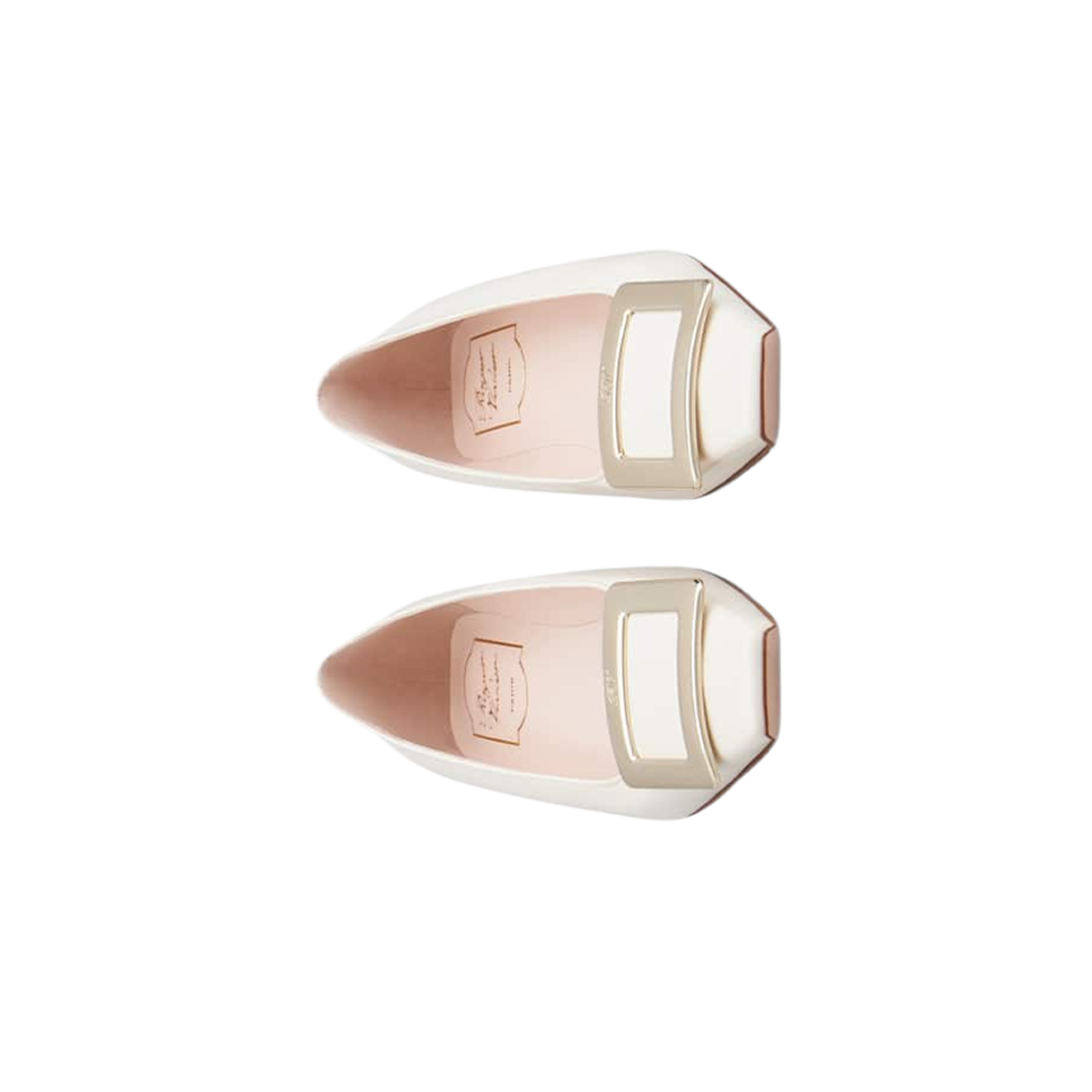(W) Roger Vivier Belle Vivier Metal Buckle Ballerinas Patent Leather White