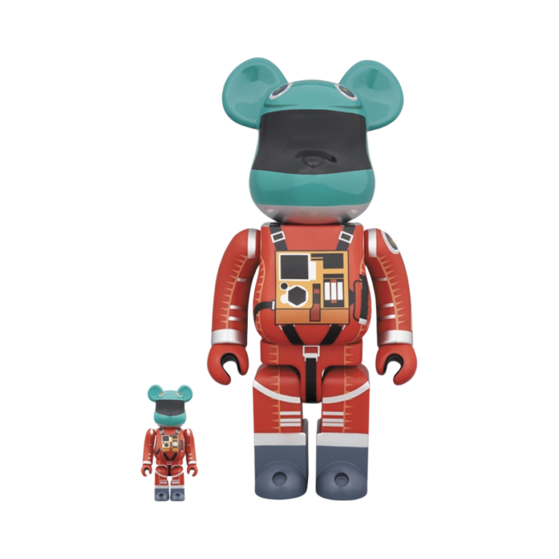 Bearbrick 2001: A Space Odyssey Space Suit Green Helmet & Orange Suit Ver. 100% & 400% Set