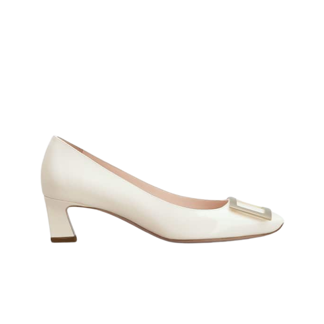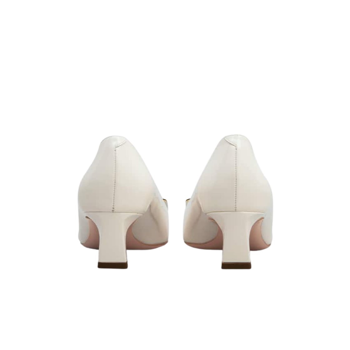 (W) Roger Vivier Trompette Metal Buckle Pumps Patent Leather Off White