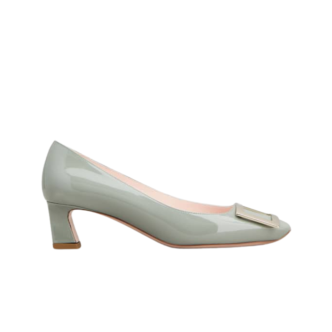 (W) Roger Vivier Trompette Metal Buckle Pumps Patent Leather Green