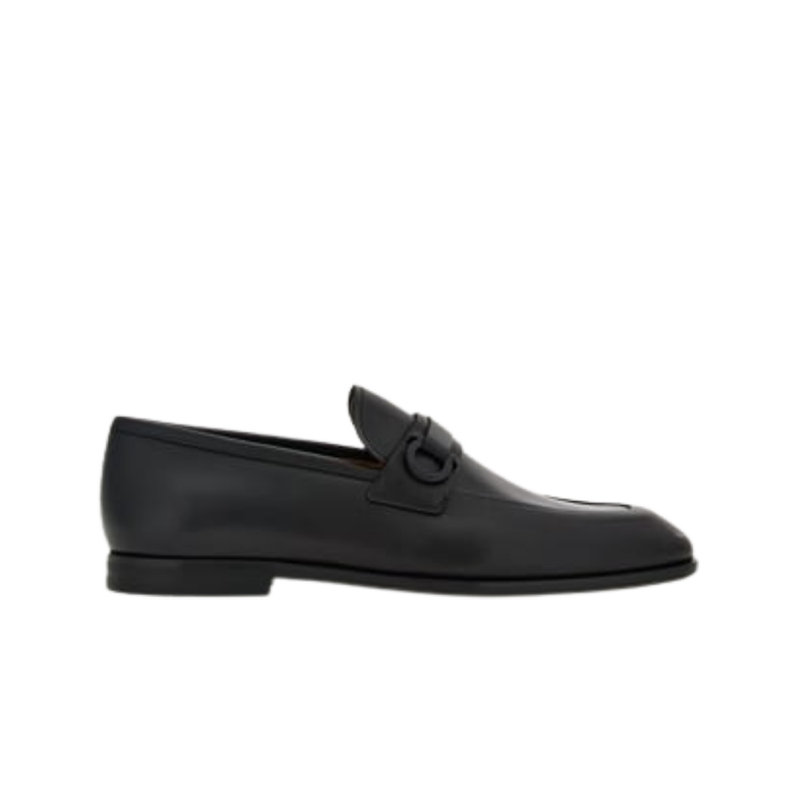 Ferragamo Moccasin with Gancini Ornament Black - D