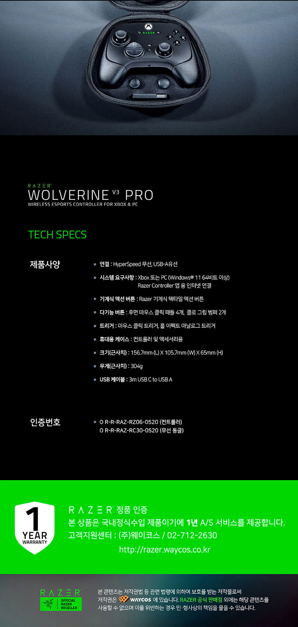 레이저 울버린 V3 프로 XBOX공식라이센스 PC호환 Wolverine V3 Pro XBOX 무선 컨트롤러