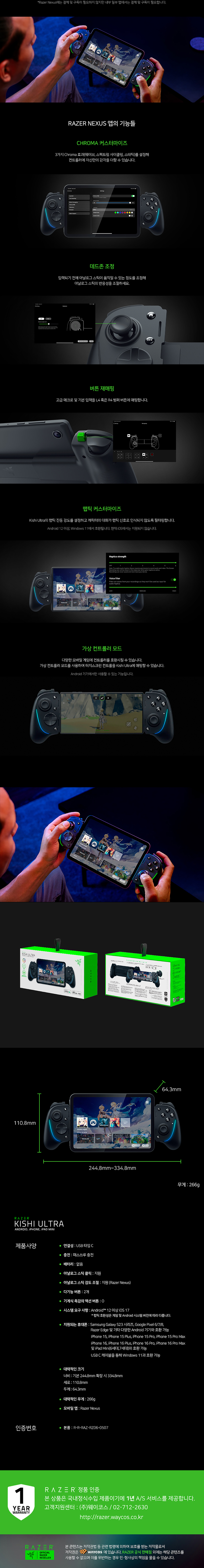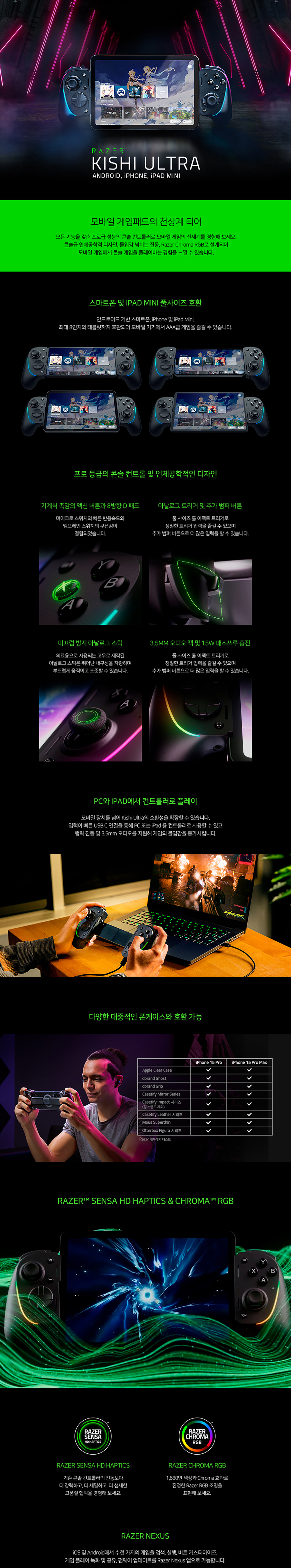 레이저 키시 울트라 Kishi Ultra 아이폰 및 안드로이드용 모바일 컨트롤러 태블릿 호환