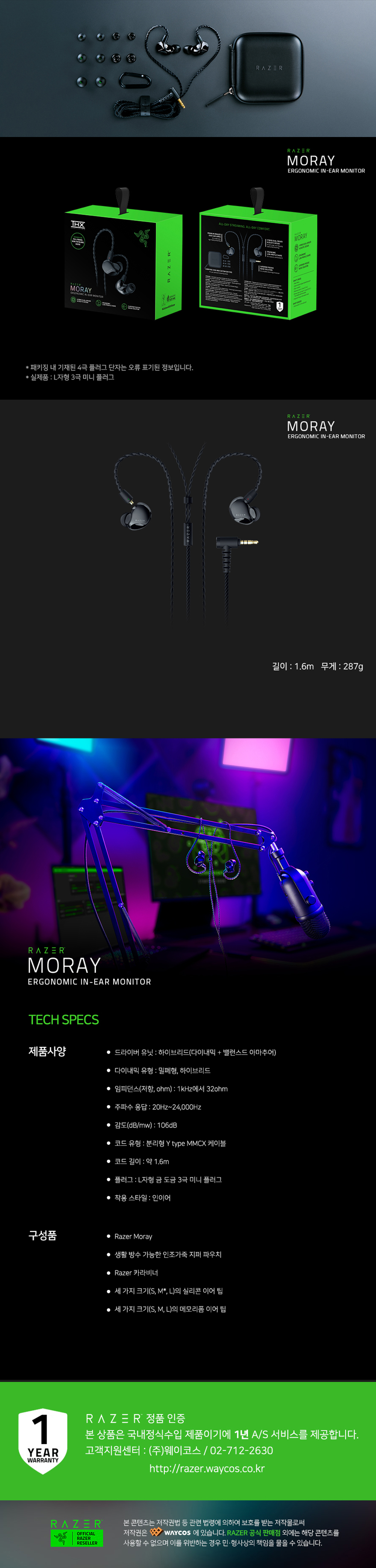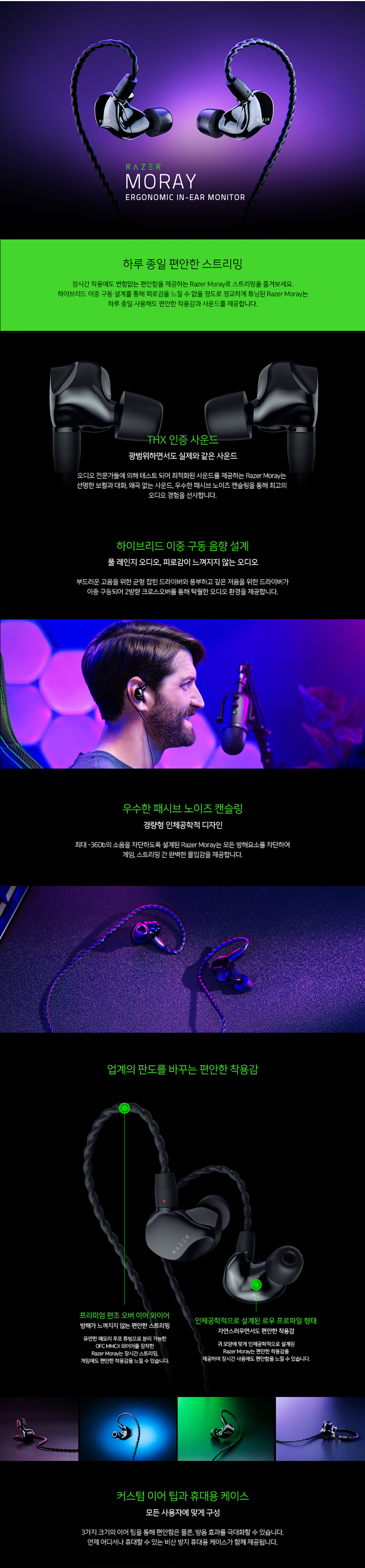 레이저 모레이 Moray 유선 스트리밍 인이어 이어폰