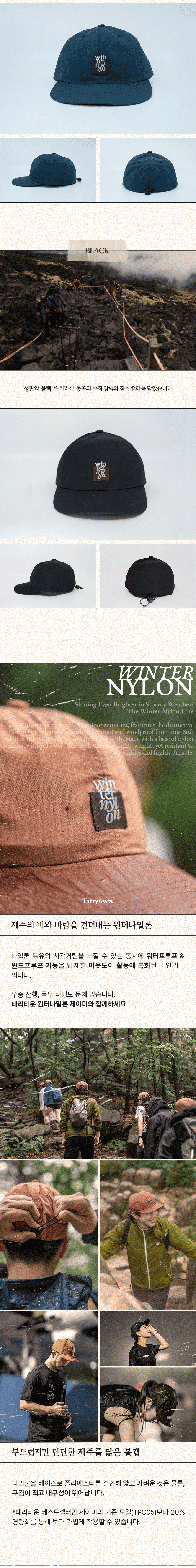 [제주 자연에서 영감을 받은 제이미] • 워터프루프 & 윈드프루프 기능을 탑재한 아웃도어 활동에 특화된 라인 • 한라산 곳곳의 자연 빛깔을 모티브로 제작 • 신축성이 적은 나일론 소재 특성을 고려한 Two-sized cap • Customized Curving으로 데일리 아웃핏에 맞는 연출 가능 • 자체제작 스웨트밴드로 느낄 수 있는 편안한 착용감