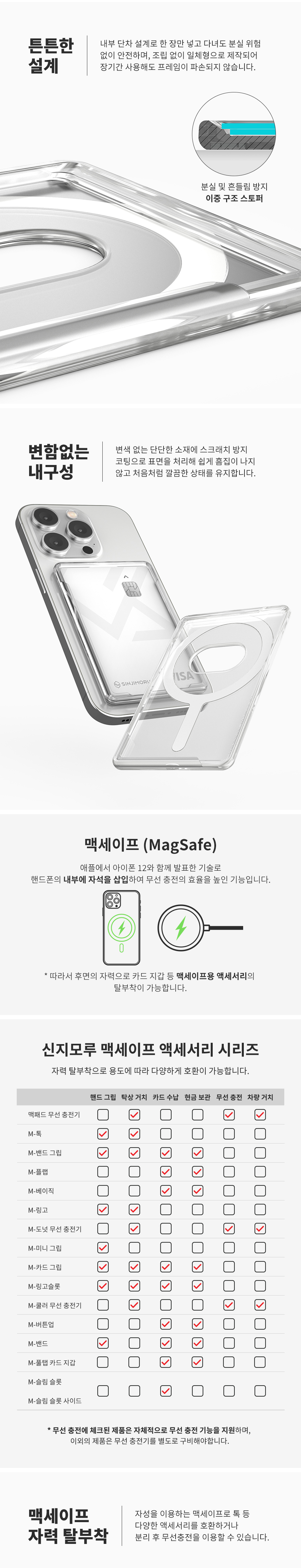 신지모루 맥세이프 슬림 슬롯 사이드 카드 홀더 아이폰 투명 카드지갑 케이스