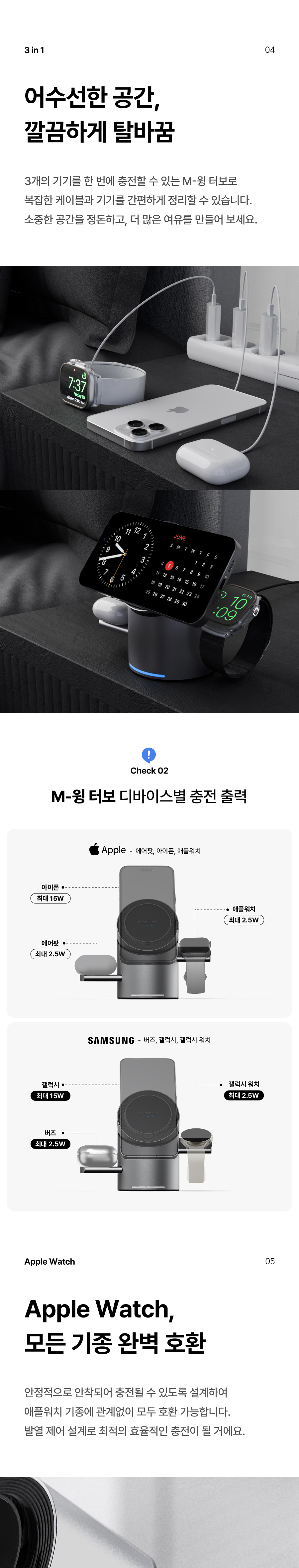 신지모루 Qi2 3in1 맥세이프 15W 무선 충전기 멀티 스탠드 애플워치 갤럭시워치 거치대 블랙