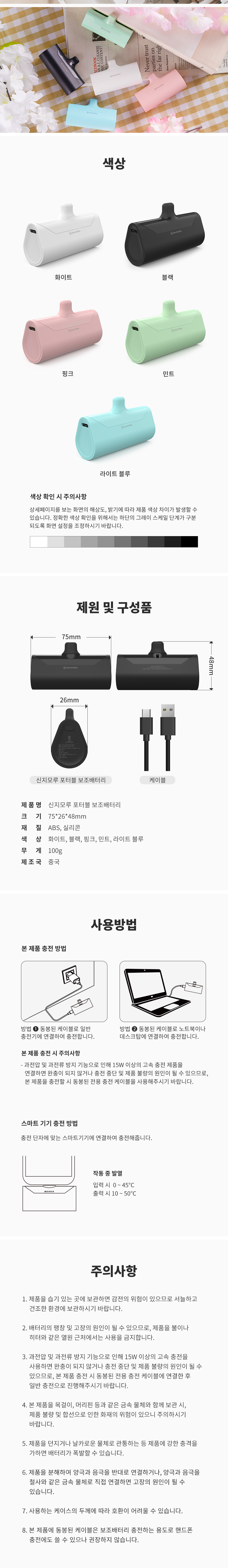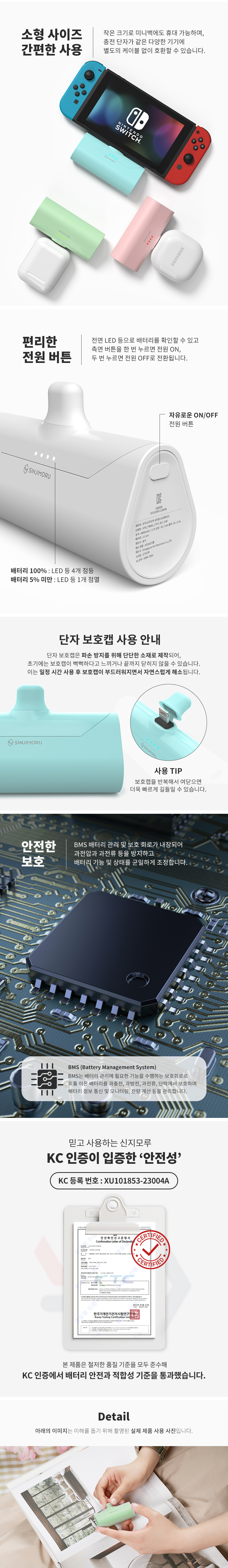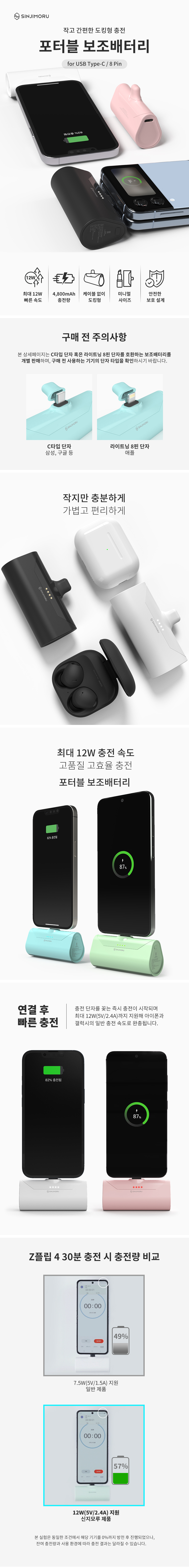 신지모루 도킹형 미니 보조배터리 아이폰 갤럭시 C타입 8핀 충전기 블랙