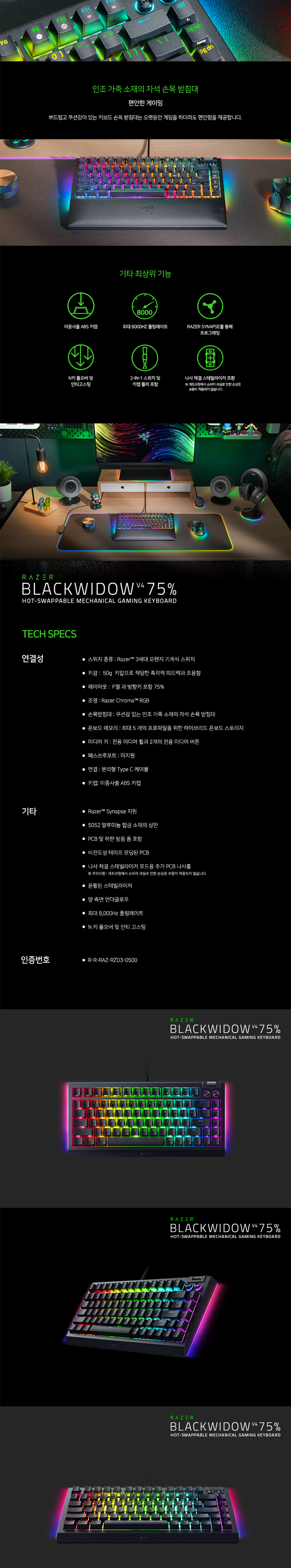 레이저 블랙위도우 V4 75% 한글