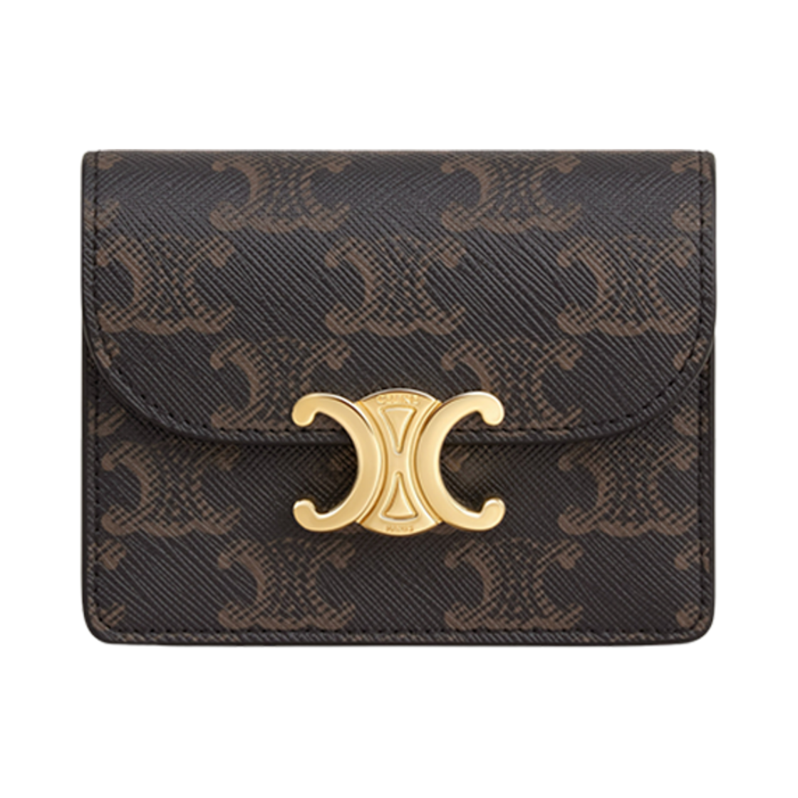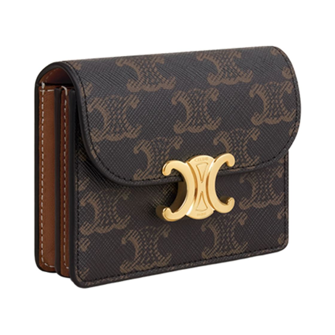셀린느 비즈니스 카드 홀더 트리옹프 트리옹프 캔버스 앤 램스킨 탄